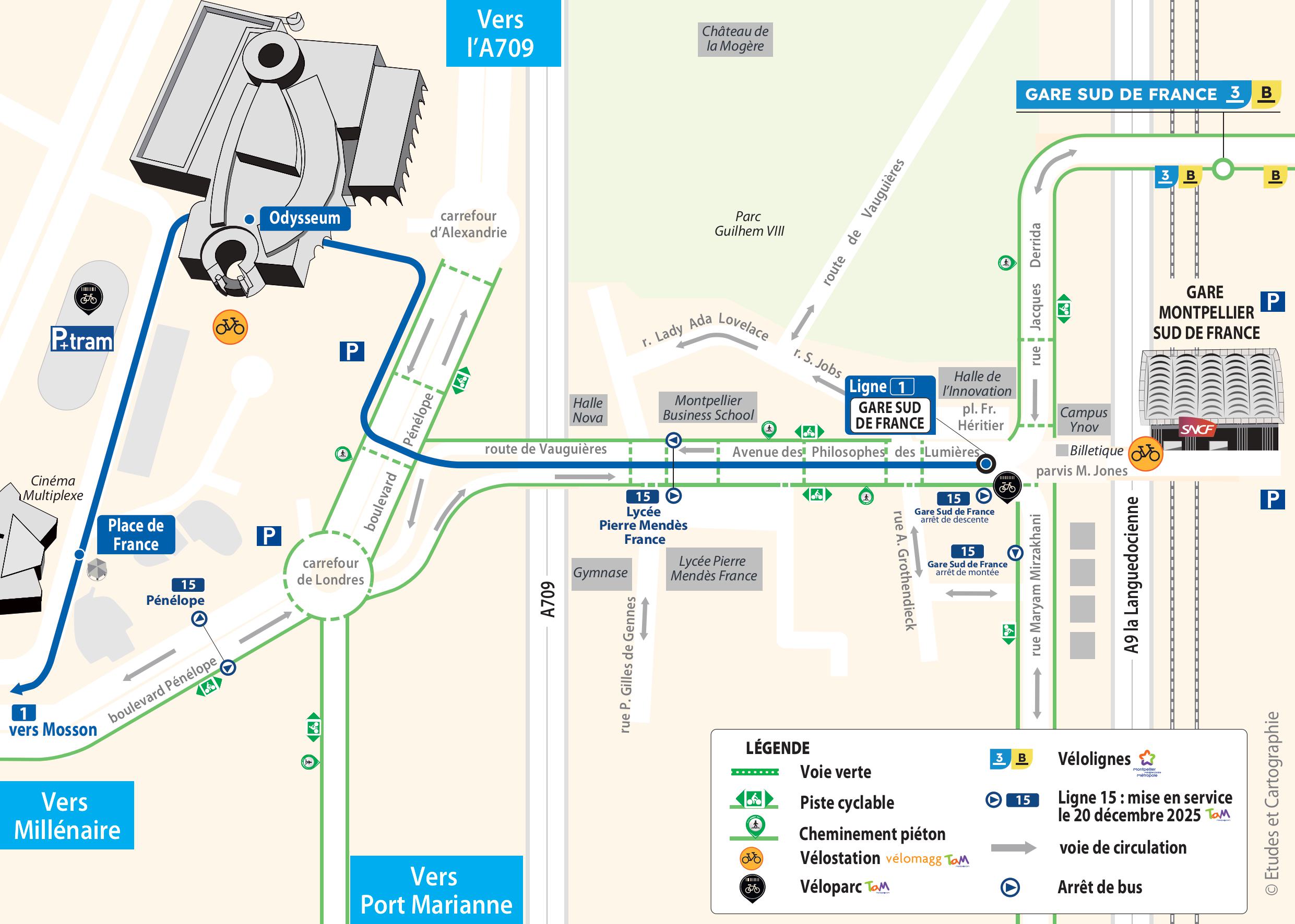 Le projet relatif à l’extension de la ligne 1 de tramway de Montpellier vers la station Gare Sud de France, a été reconnu d’utilité publique en octobre 2022. Ce prolongement de voie ferrée permet de donner toute sa mesure à la gare TGV Montpellier Sud de France, en complément de la gare Saint-Roch, et desservir le nouveau quartier Cambacérès, ses entreprises sa Halle de l’Innovation ainsi que le lycée Pierre Mendès France, via la ligne 1 de tramway.