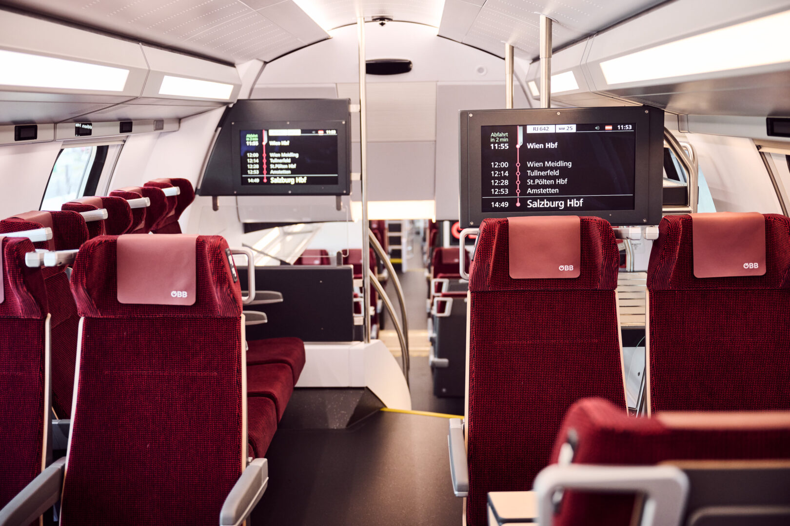 Les 14 trains à deux étages à six parties seront progressivement déployés à partir de fin 2026 sur la ligne ouest entre Vienne et Salzbourg, où ils circuleront à une vitesse allant jusqu’à 200 km/h. Avec 486 places assises par véhicule, les trains offrent une augmentation de capacité de 20 % par rapport aux trains existants. Les portes larges et accessibles aux personnes à mobilité réduite permettent de changer rapidement les passagers. Grâce aux zones d’entrée à plancher surbaissé, les passagers à mobilité réduite, les bagages lourds, les vélos ou les poussettes peuvent voyager sans obstacle. Les trains à deux étages KISS répondent ainsi aux besoins et aux exigences de tous les voyageurs.