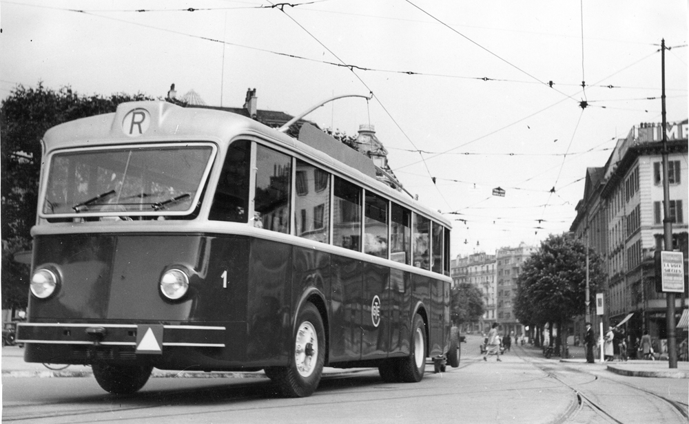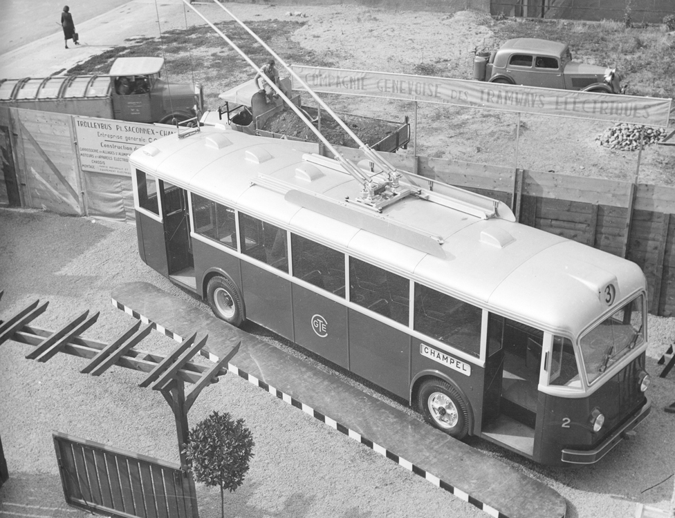 La Compagnie Genevoise des Tramways Electriques a introduit le trolleybus en 1942 sur le tronçon Champel-Petit Saconnex, exploité jusqu’alors par le tramway. Photo ci-dessus : Collection bustramgeneve