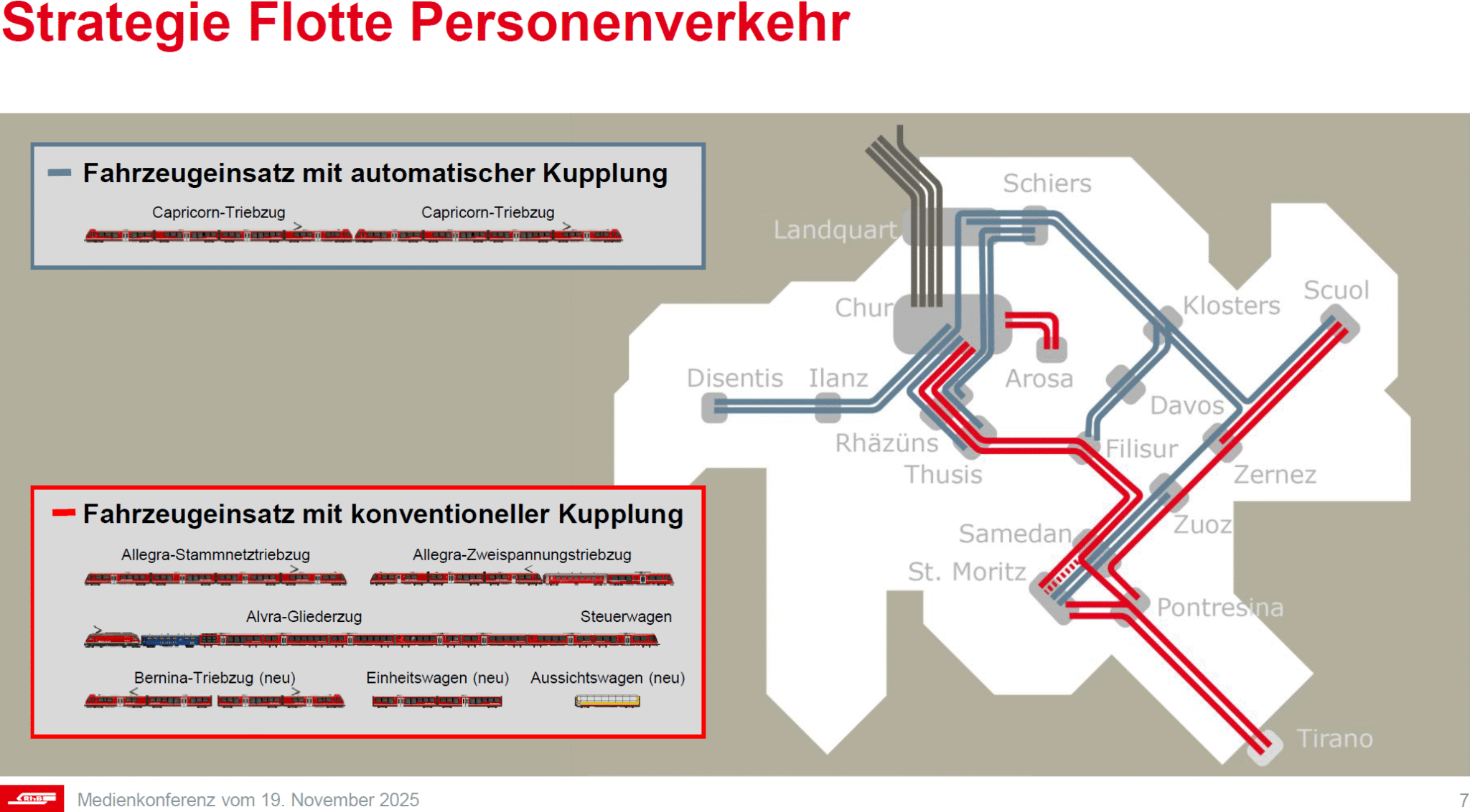 Les chemins de fer rhétiques (RhB) enregistrent cette année encore une forte croissance du trafic de loisirs et touristique. En ce qui concerne les passagers-kilomètres, les valeurs de l’année précédente ont été dépassées de 11 % au cours des dix premiers mois de 2025. Cela a entraîné, entre autres, des pénuries de capacité sur la ligne de la Bernina pendant la haute saison. Lors d’une conférence de presse, le président du conseil d’administration, le Dr Mario Cavigelli, et le directeur de la RhB, le Dr Renato Fasciati, ont informé de l’évolution de la saison et ont montré comment la RhB a l’inté l’intention de relever les défis de la ligne de la Bernina à l’avenir.
