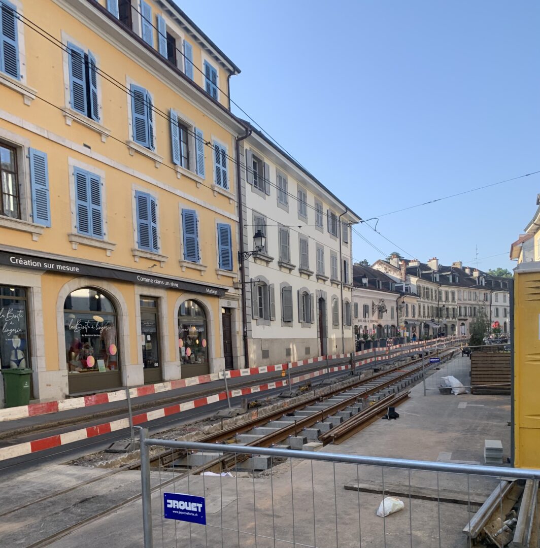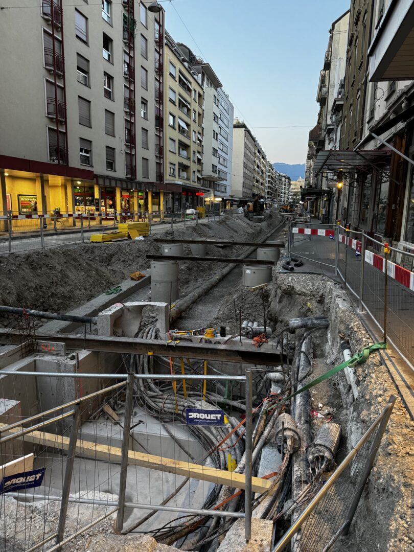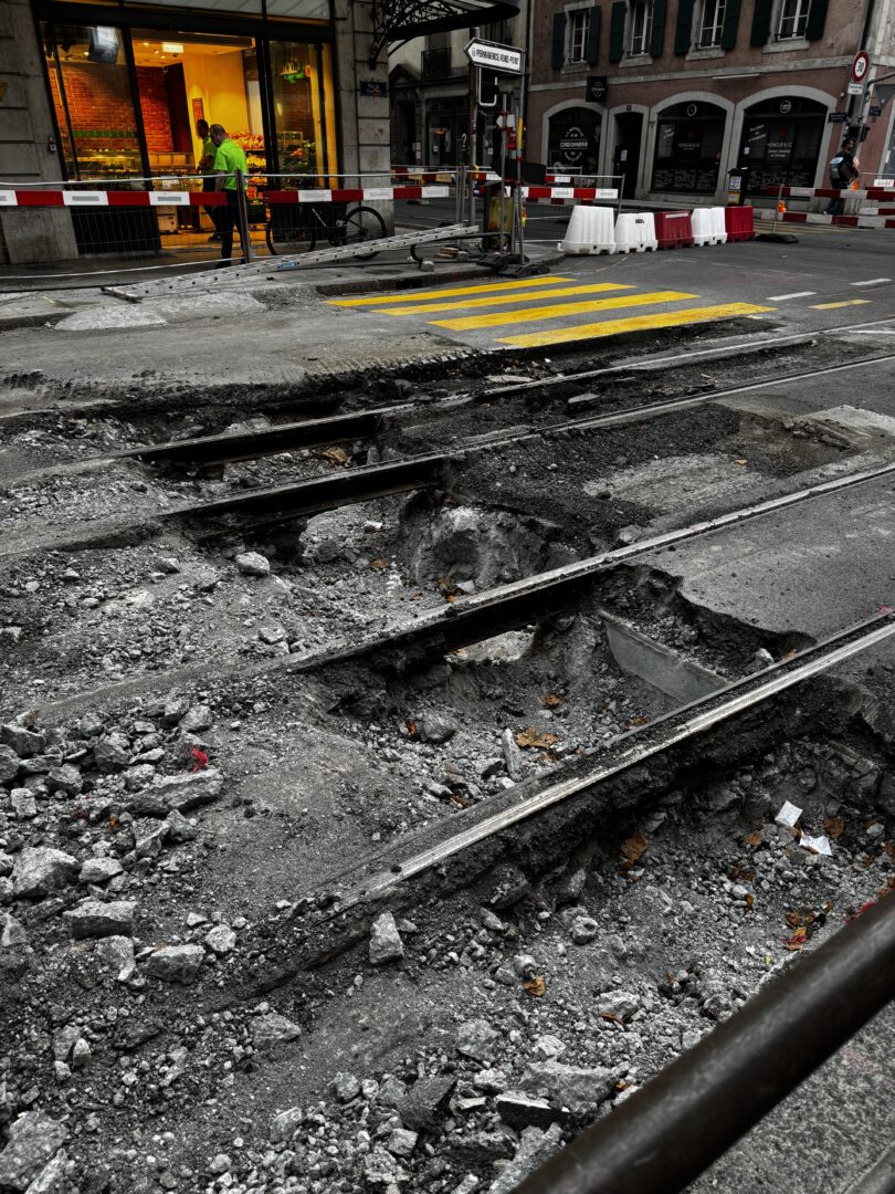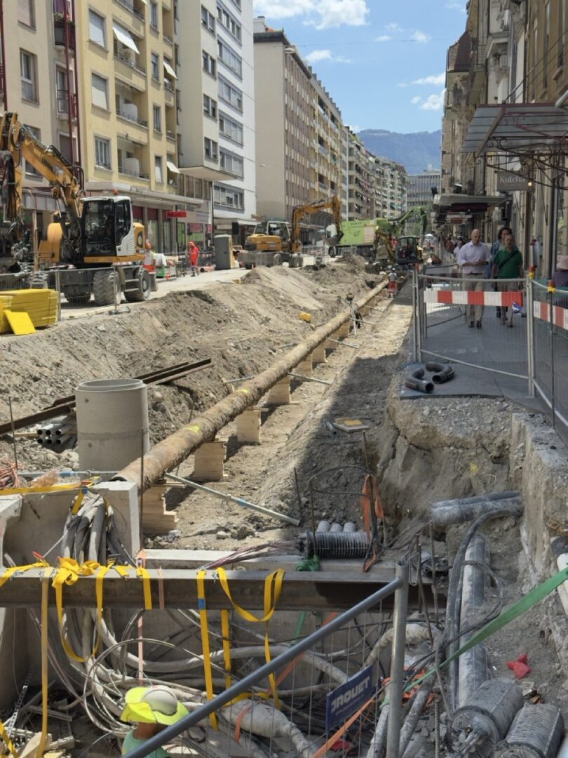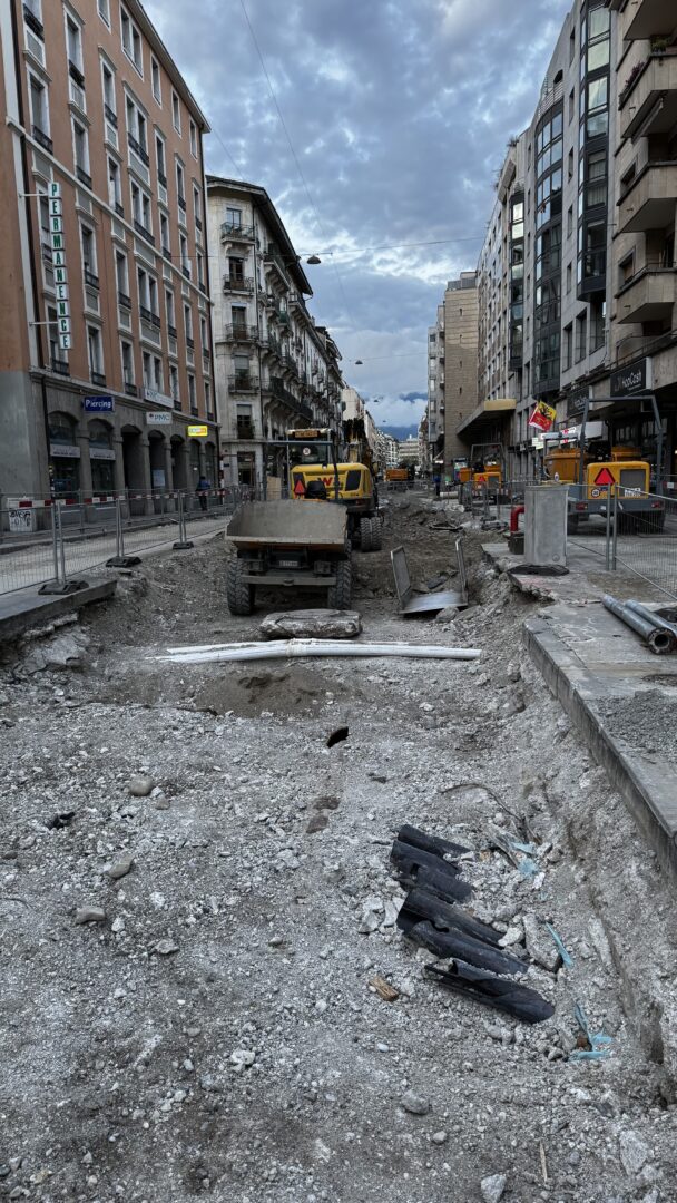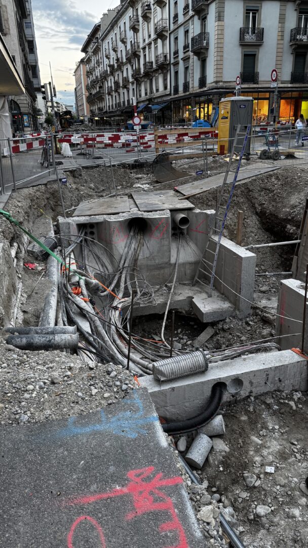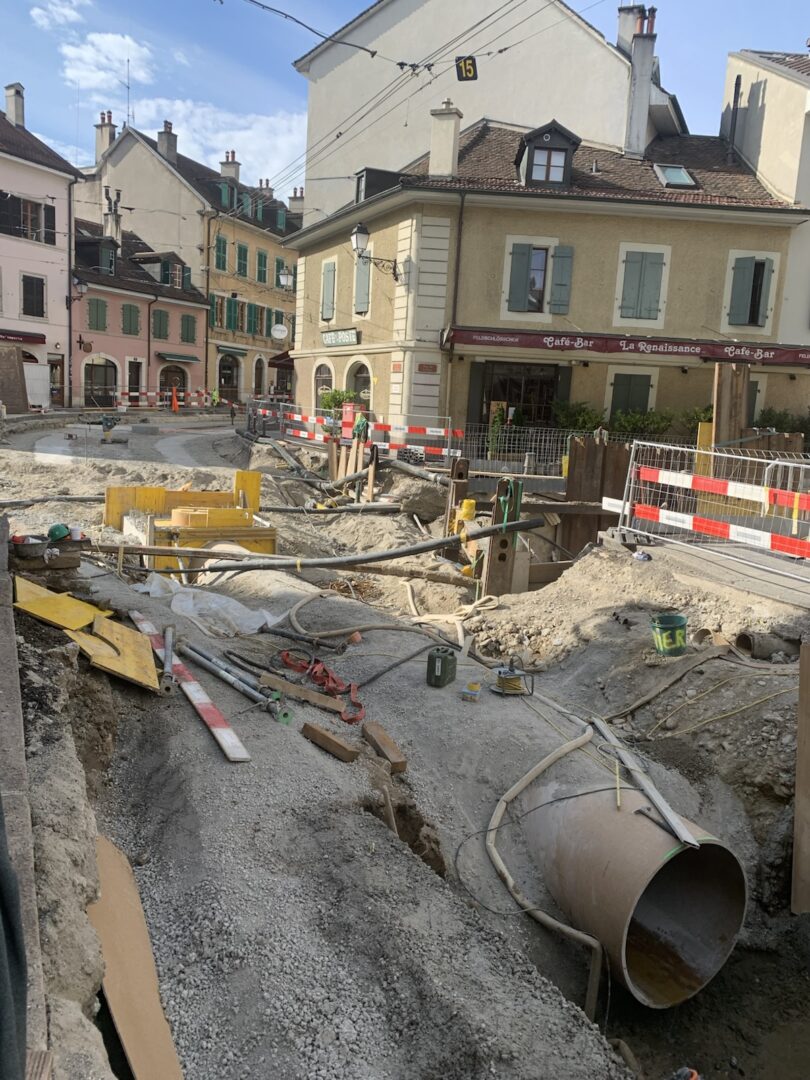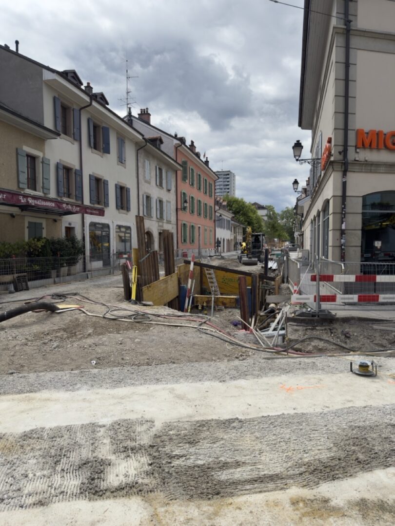 En même temps, dans le vieux Carouge, on en profite pour renouveler conduites et rails.