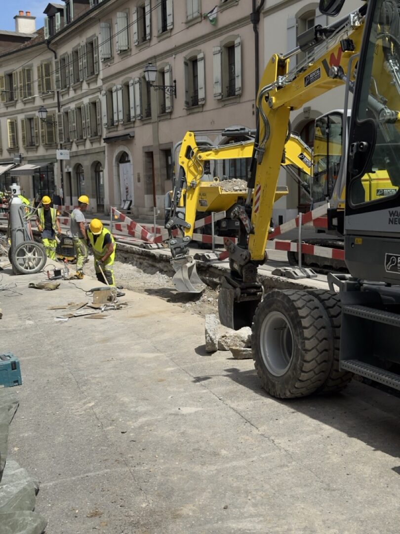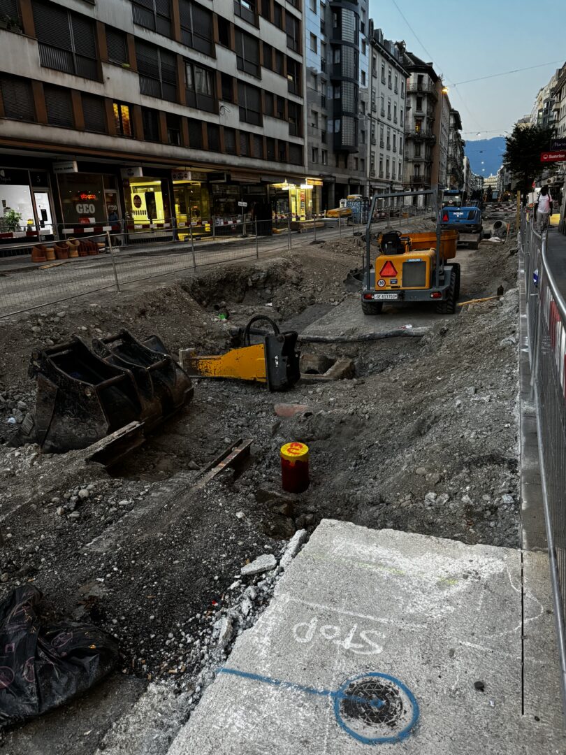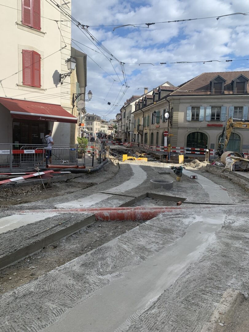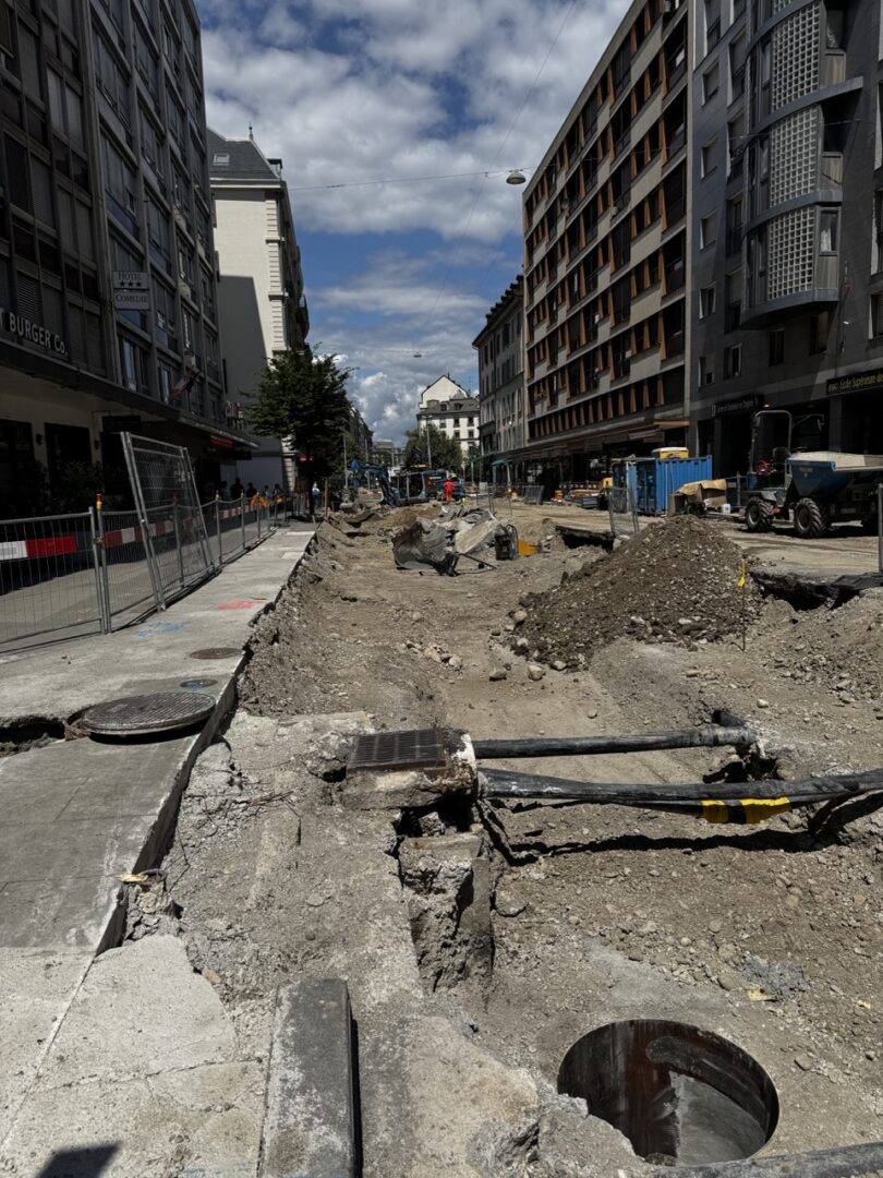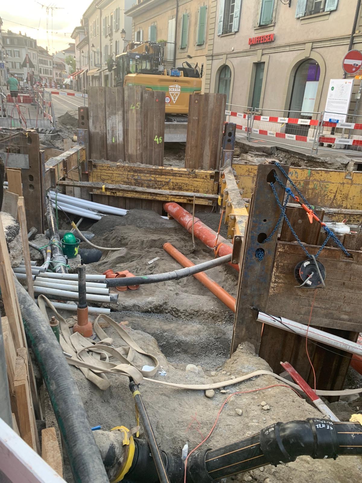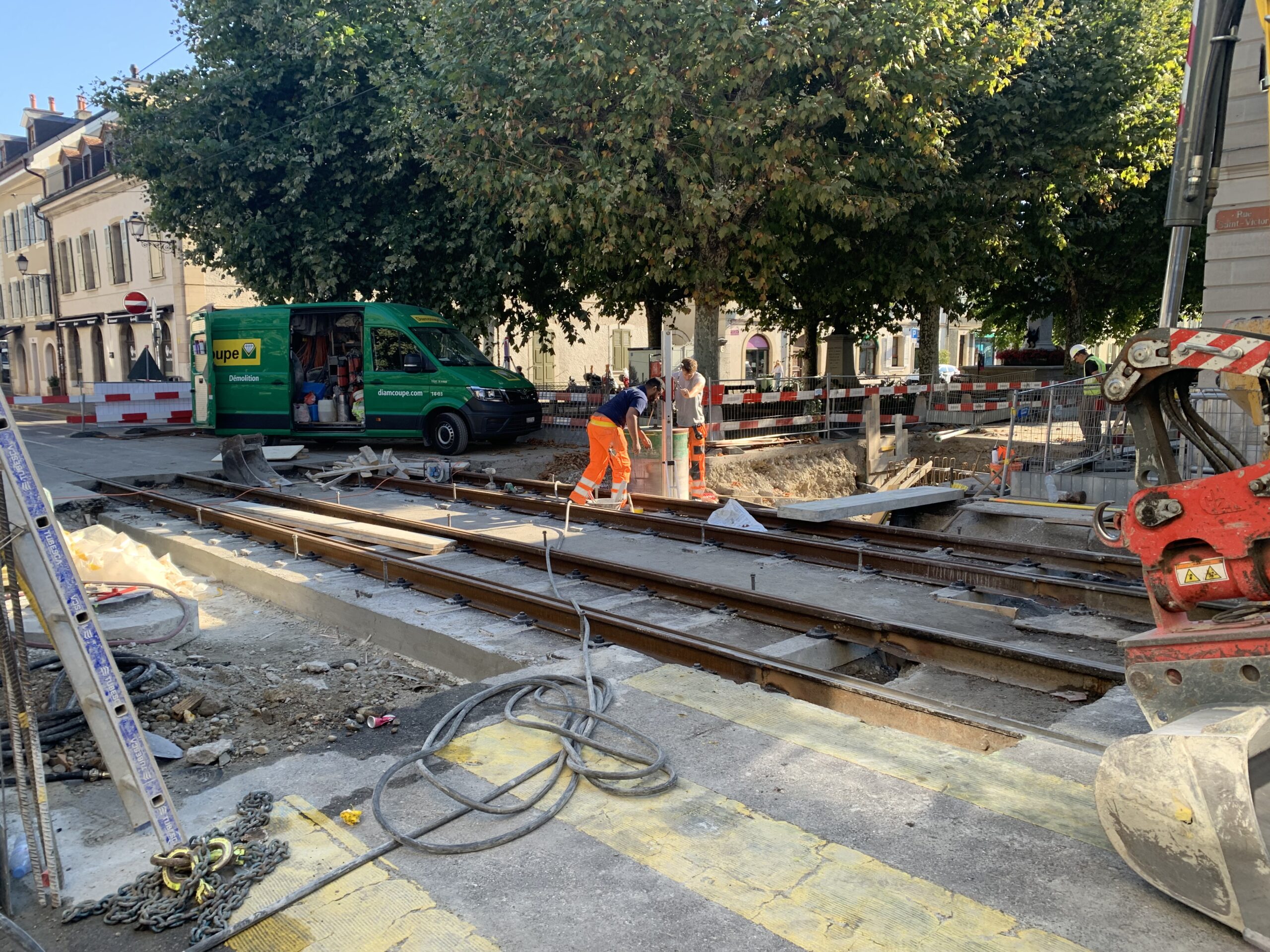 En même temps, dans le vieux Carouge, on en profite pour renouveler conduites et rails.