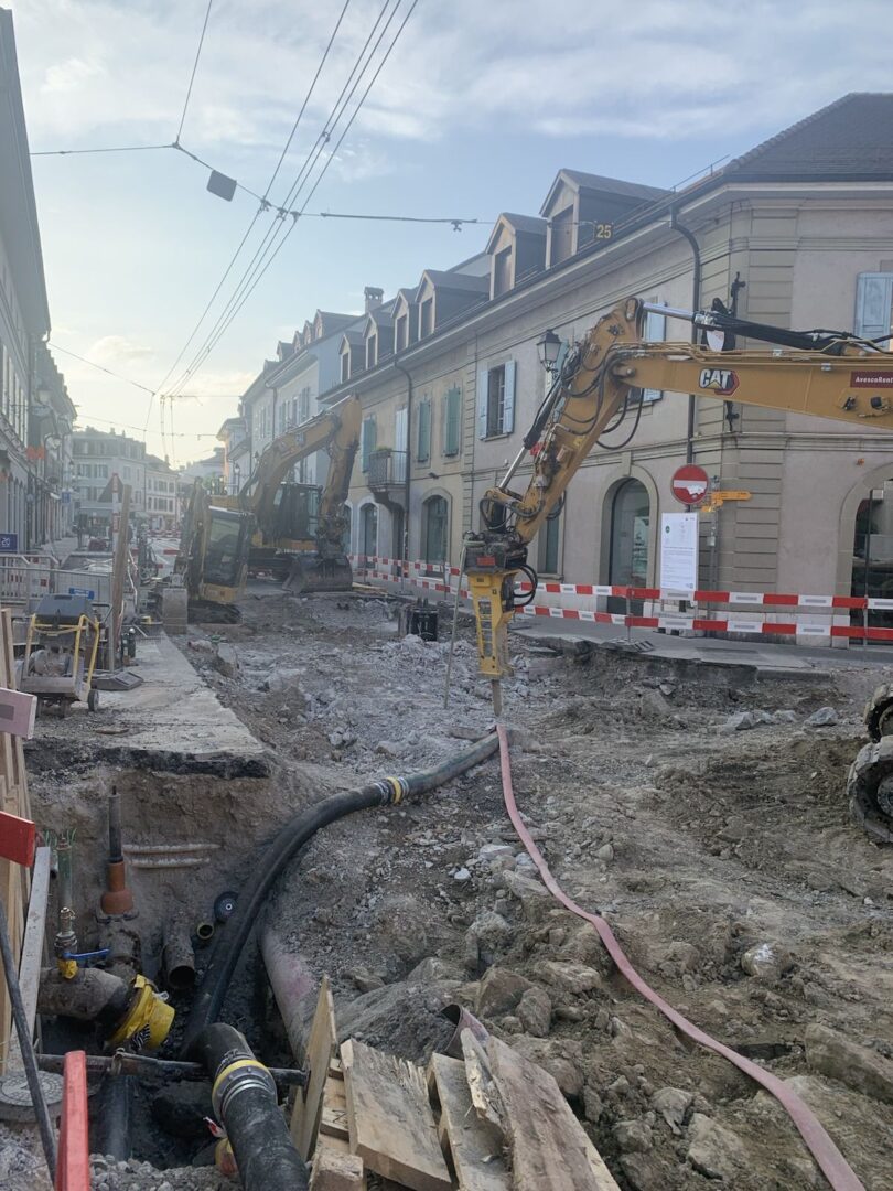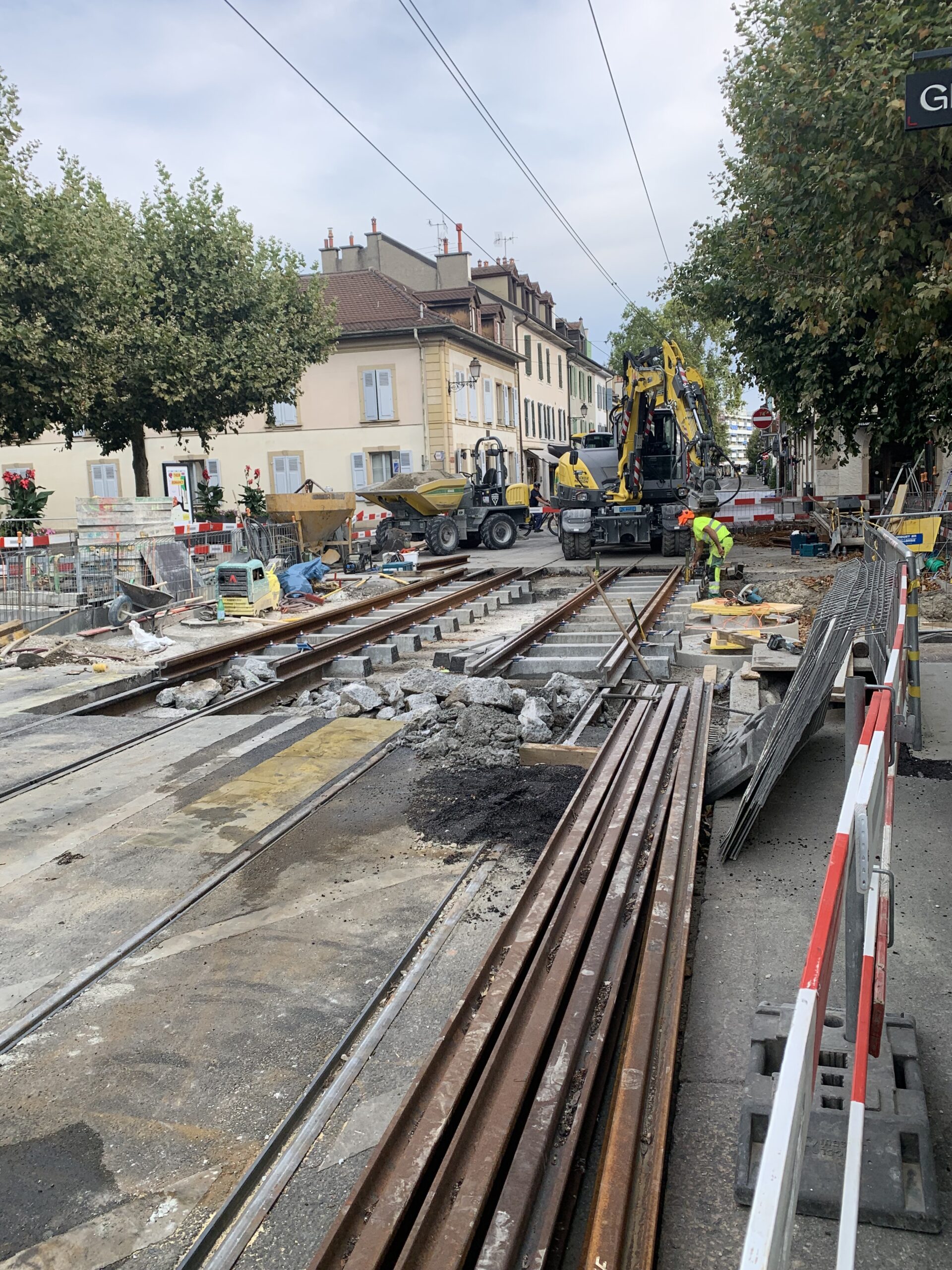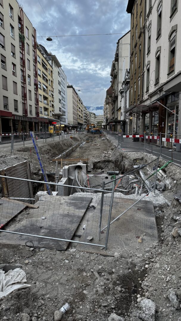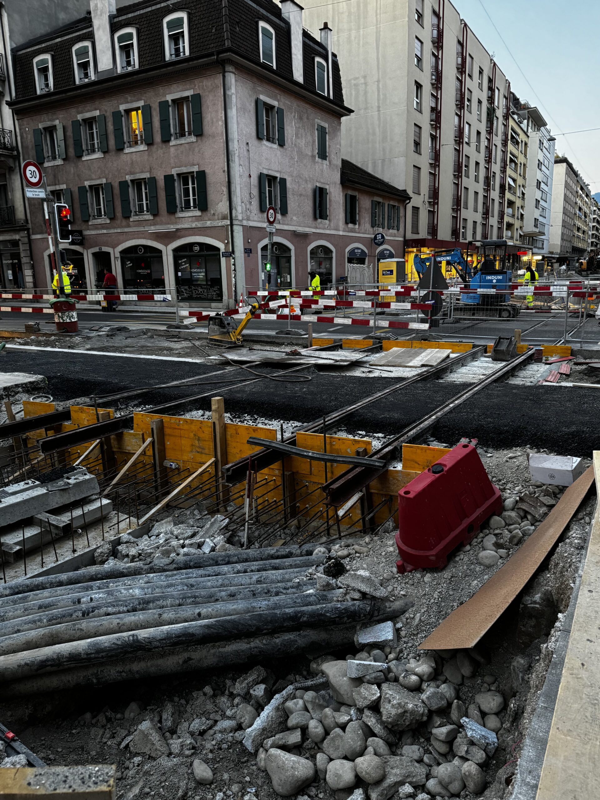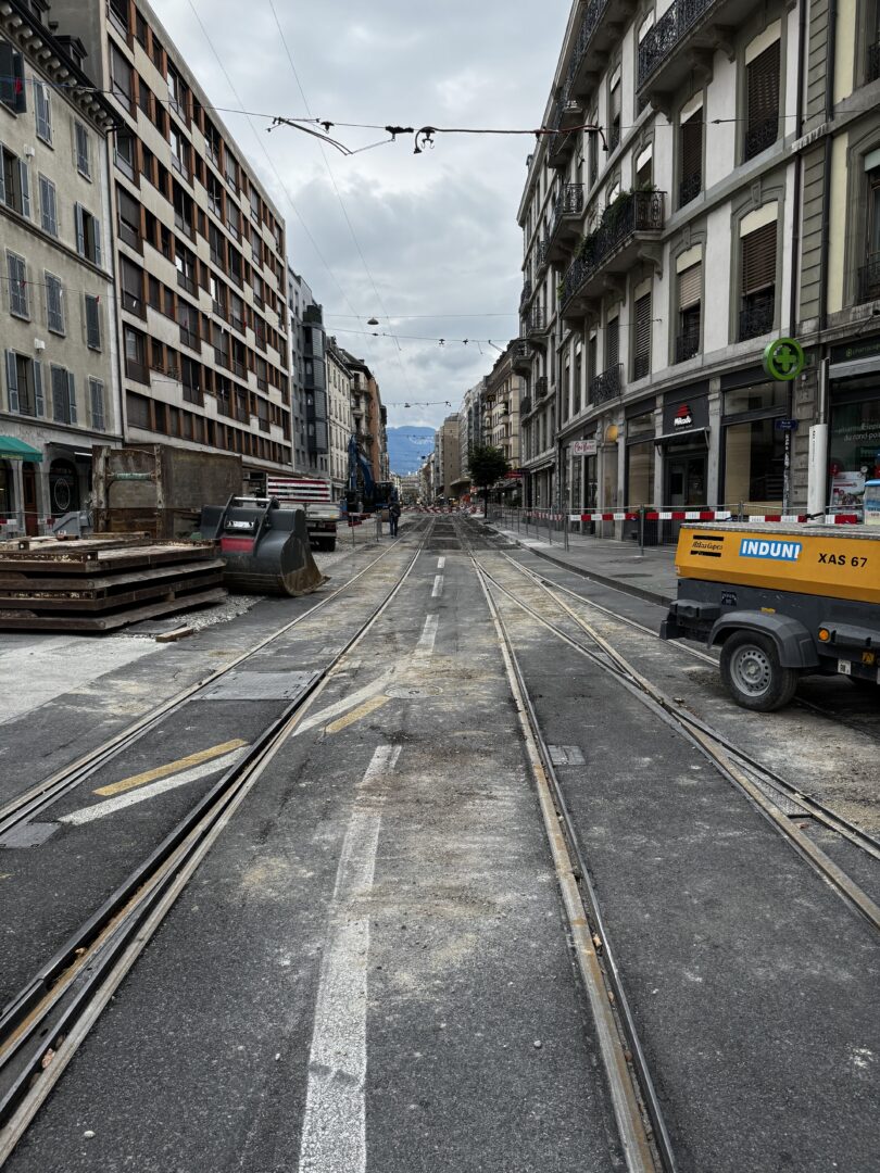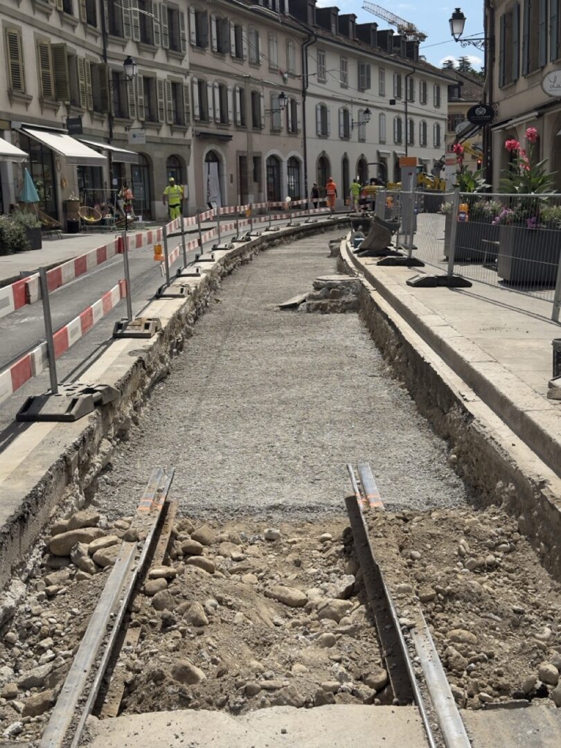 En même temps, dans le vieux Carouge, on en profite pour renouveler conduites et rails.