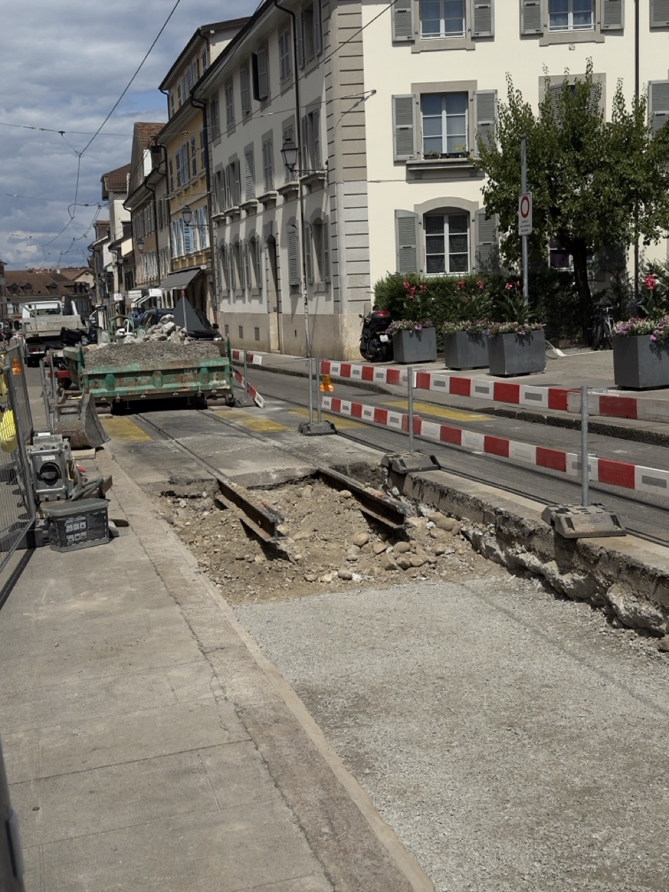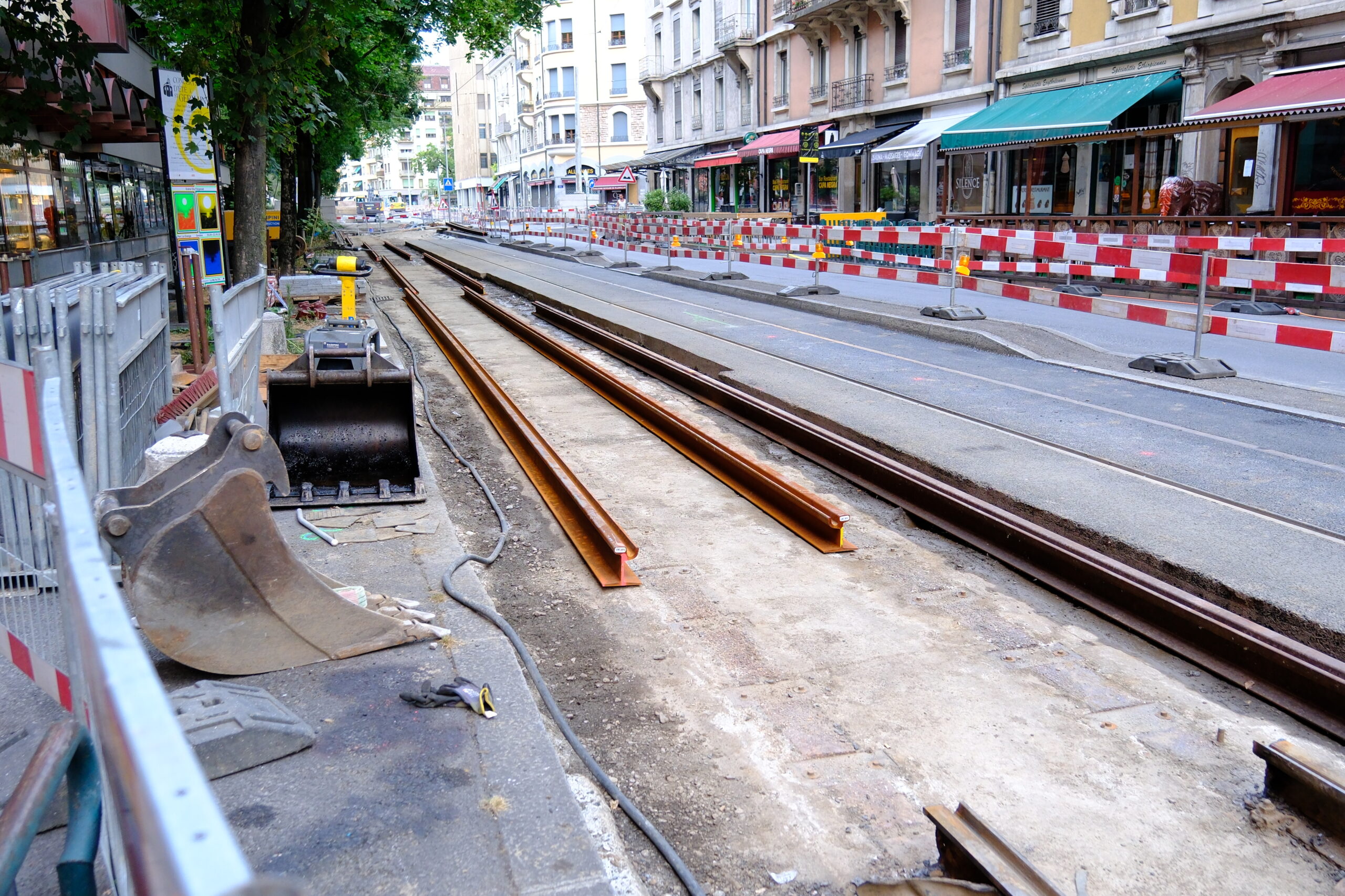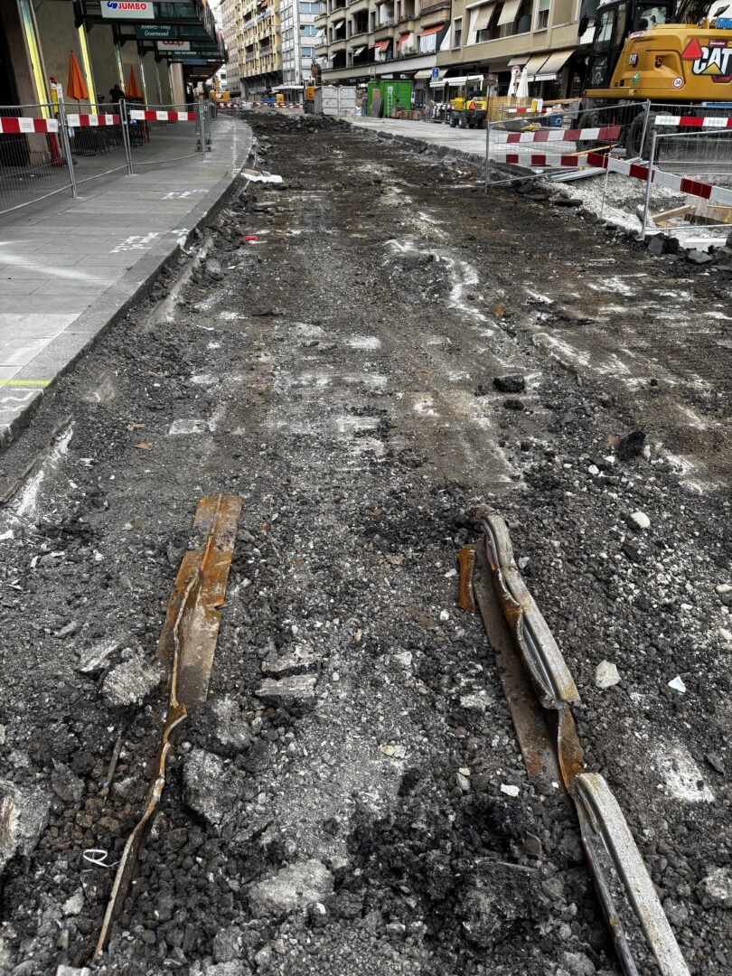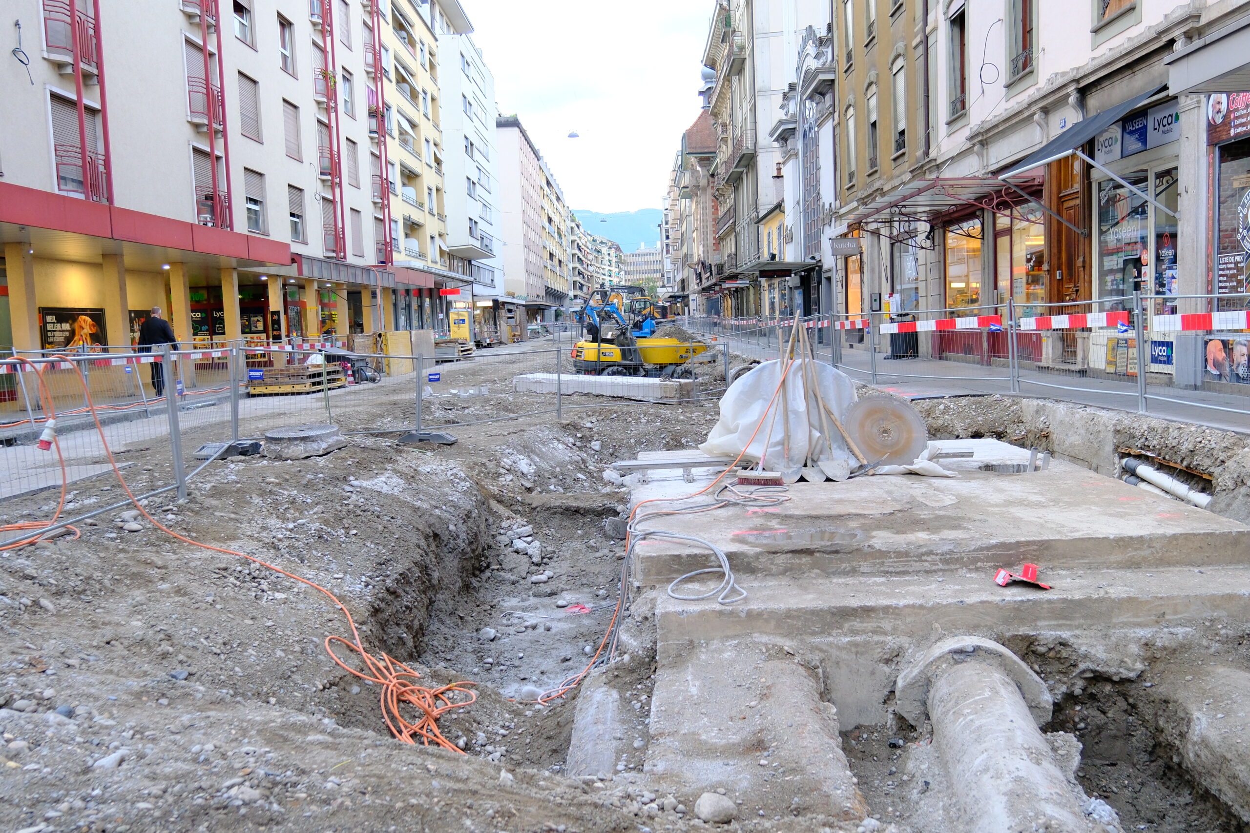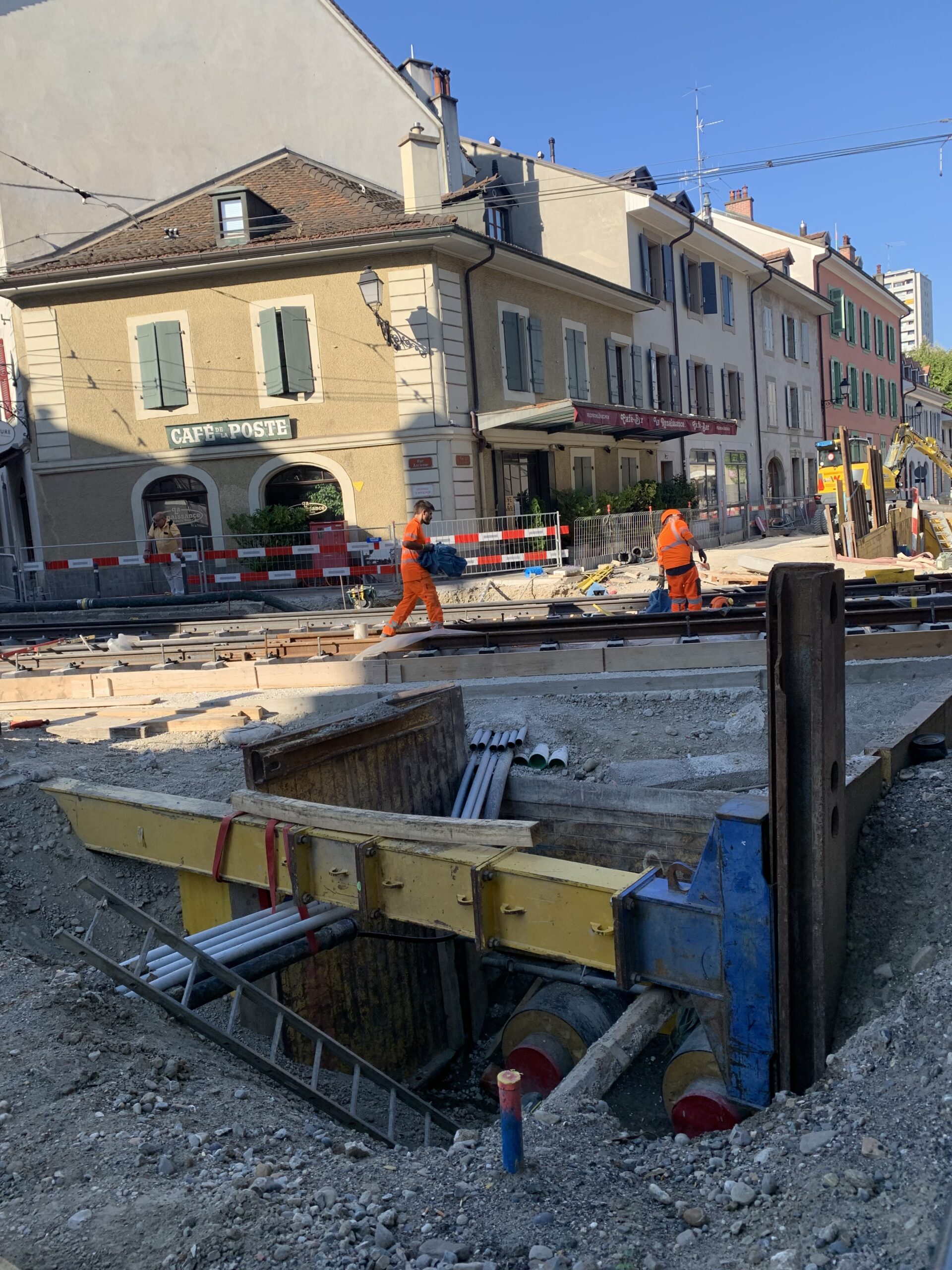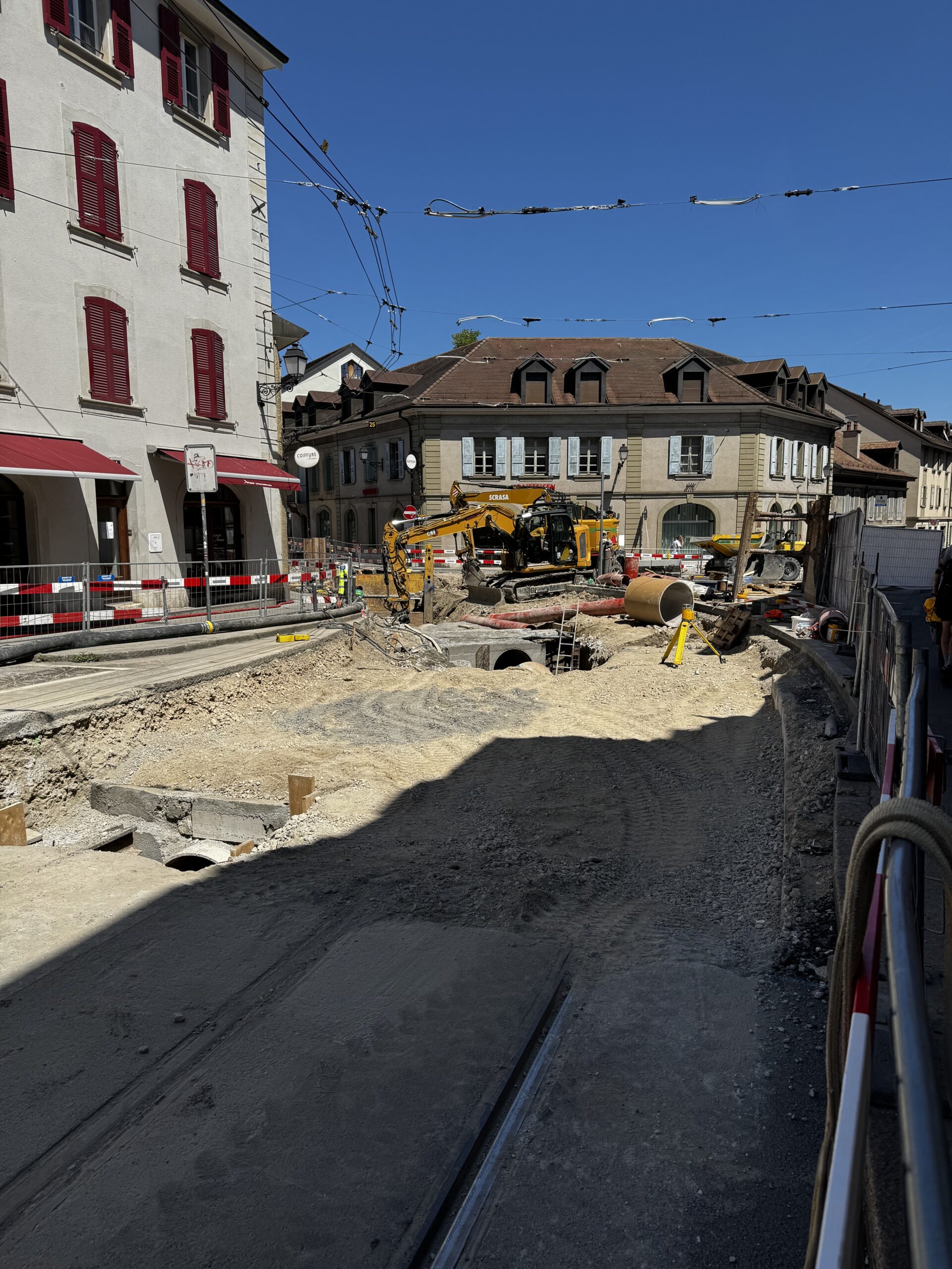 En même temps, dans le vieux Carouge, on en profite pour renouveler conduites et rails.