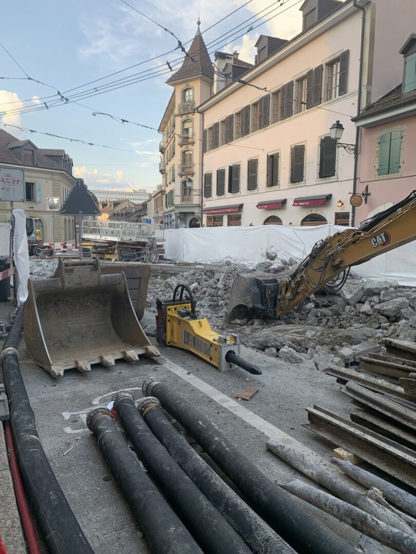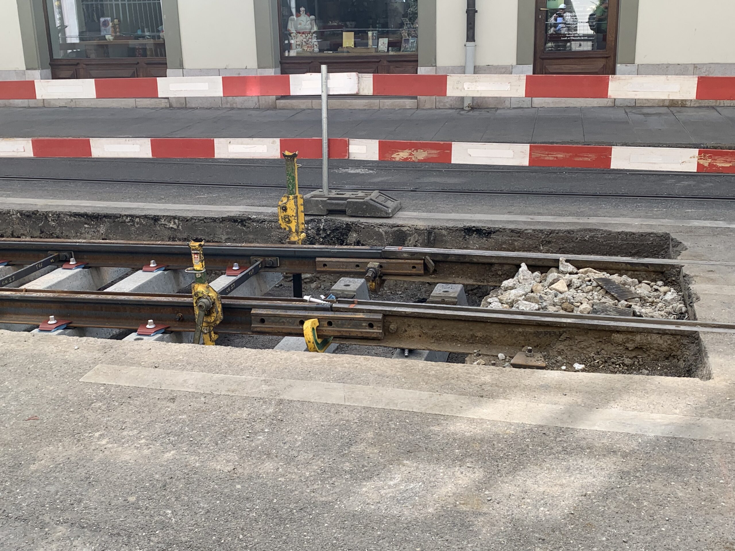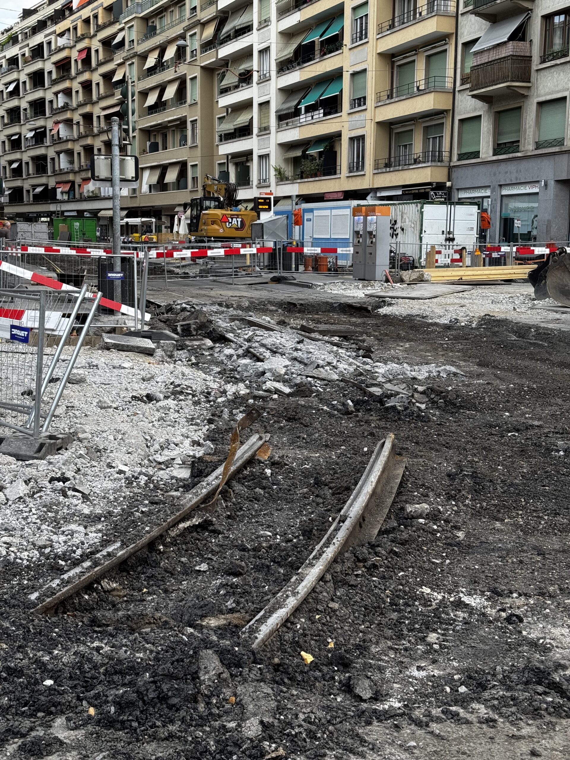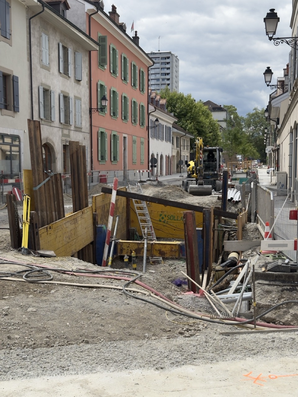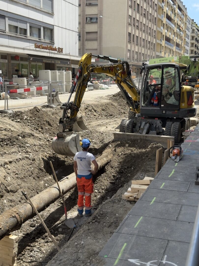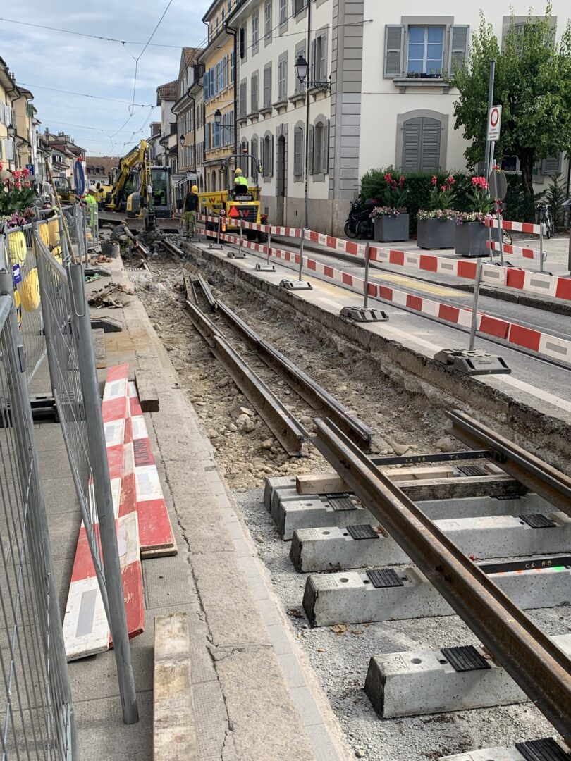 En même temps, dans le vieux Carouge, on en profite pour renouveler conduites et rails.