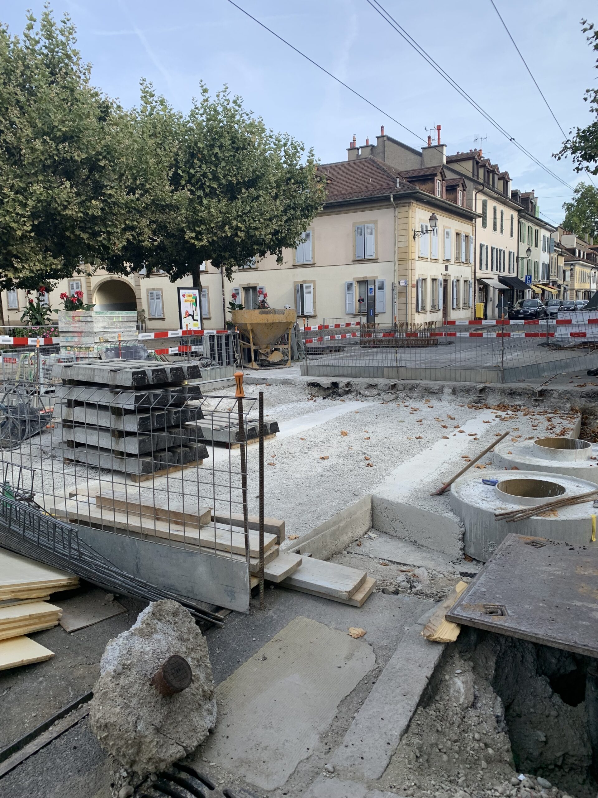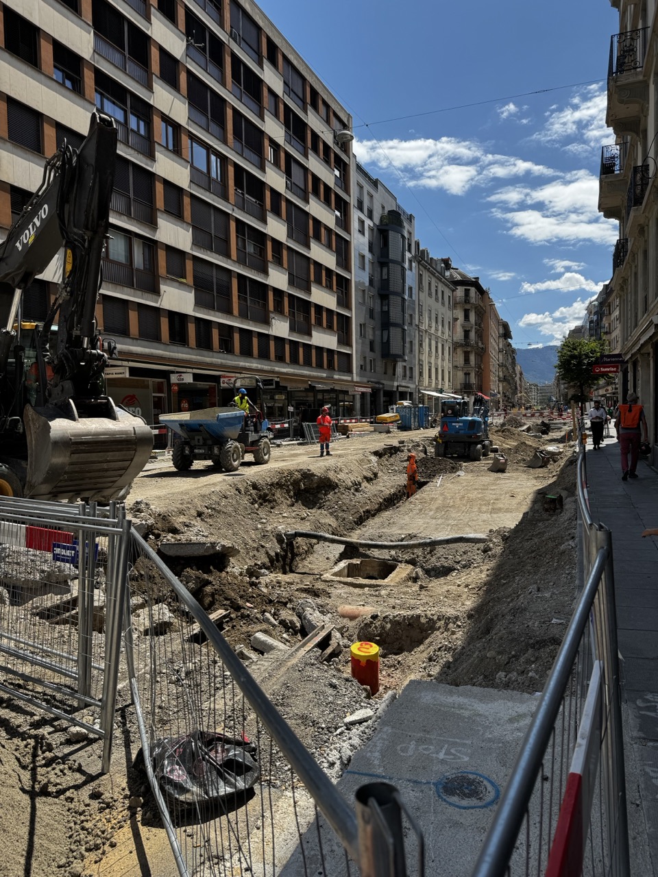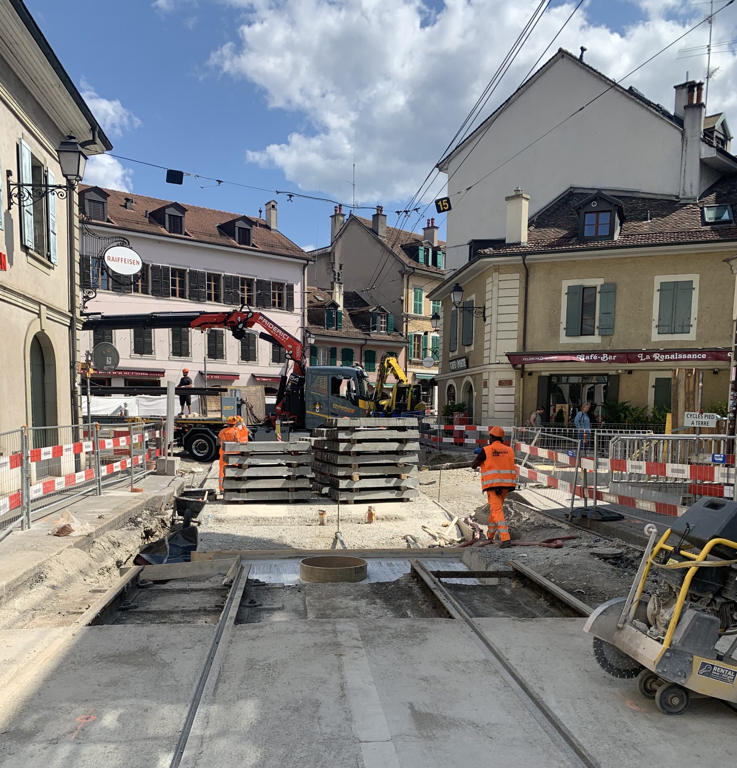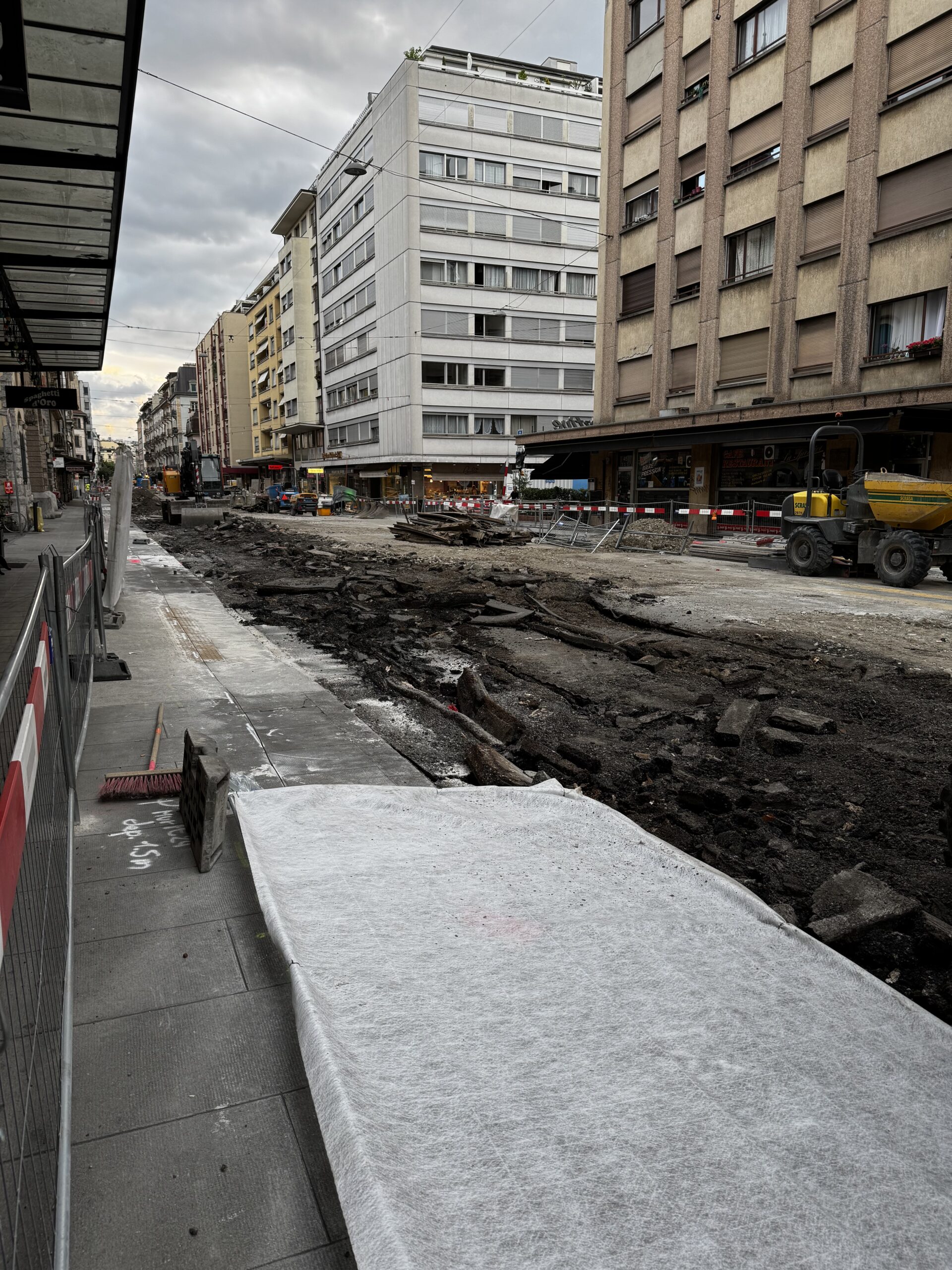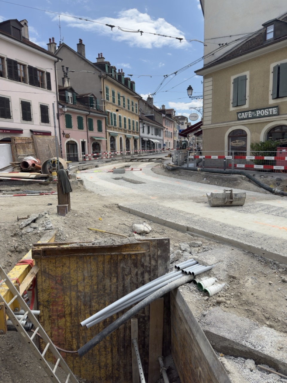 En même temps, dans le vieux Carouge, on en profite pour renouveler conduites et rails.