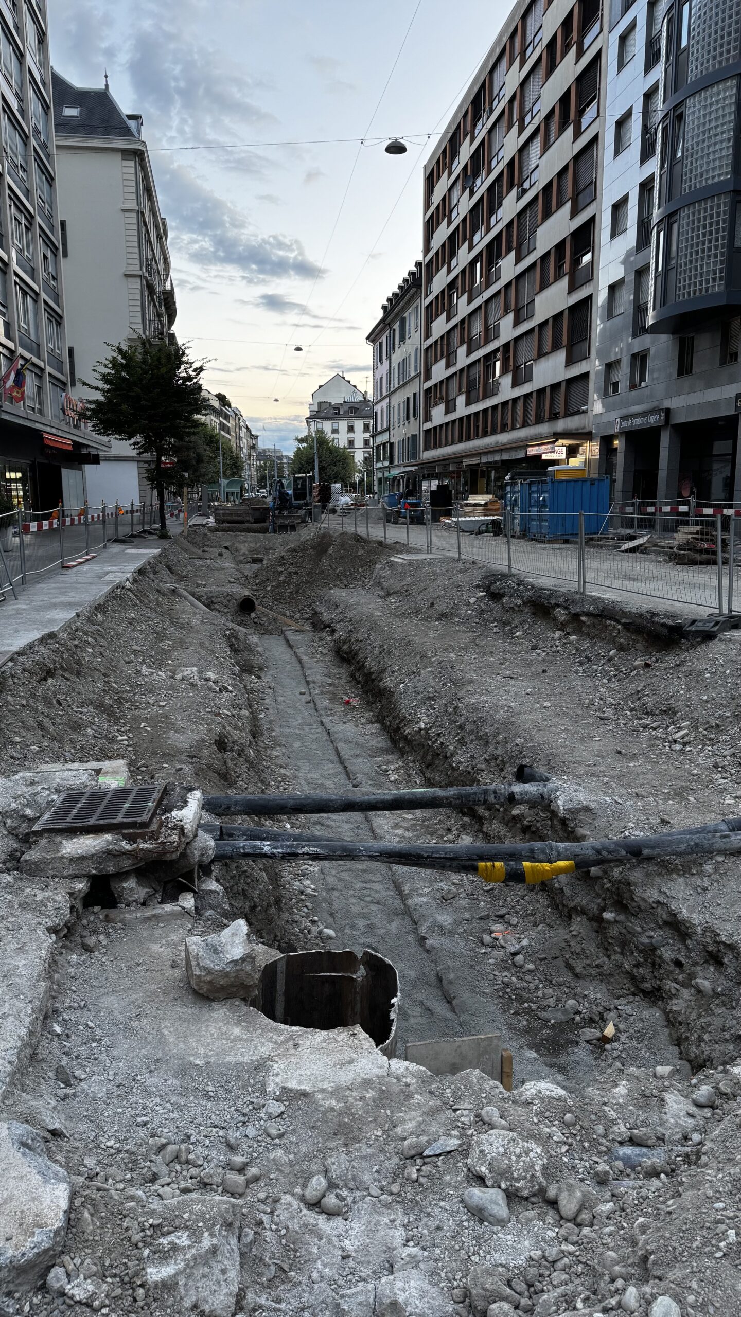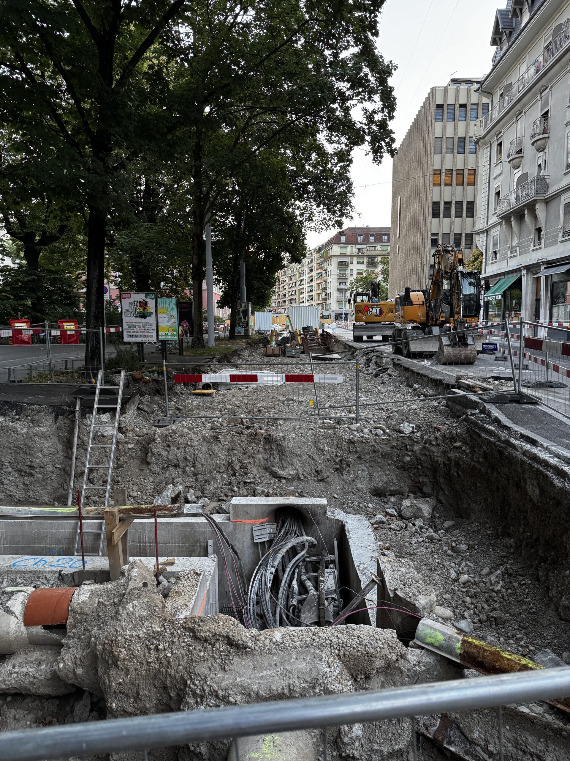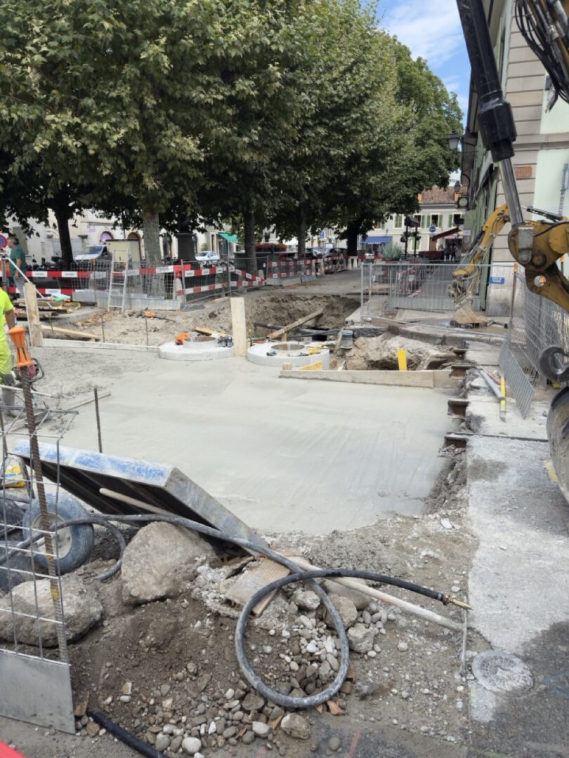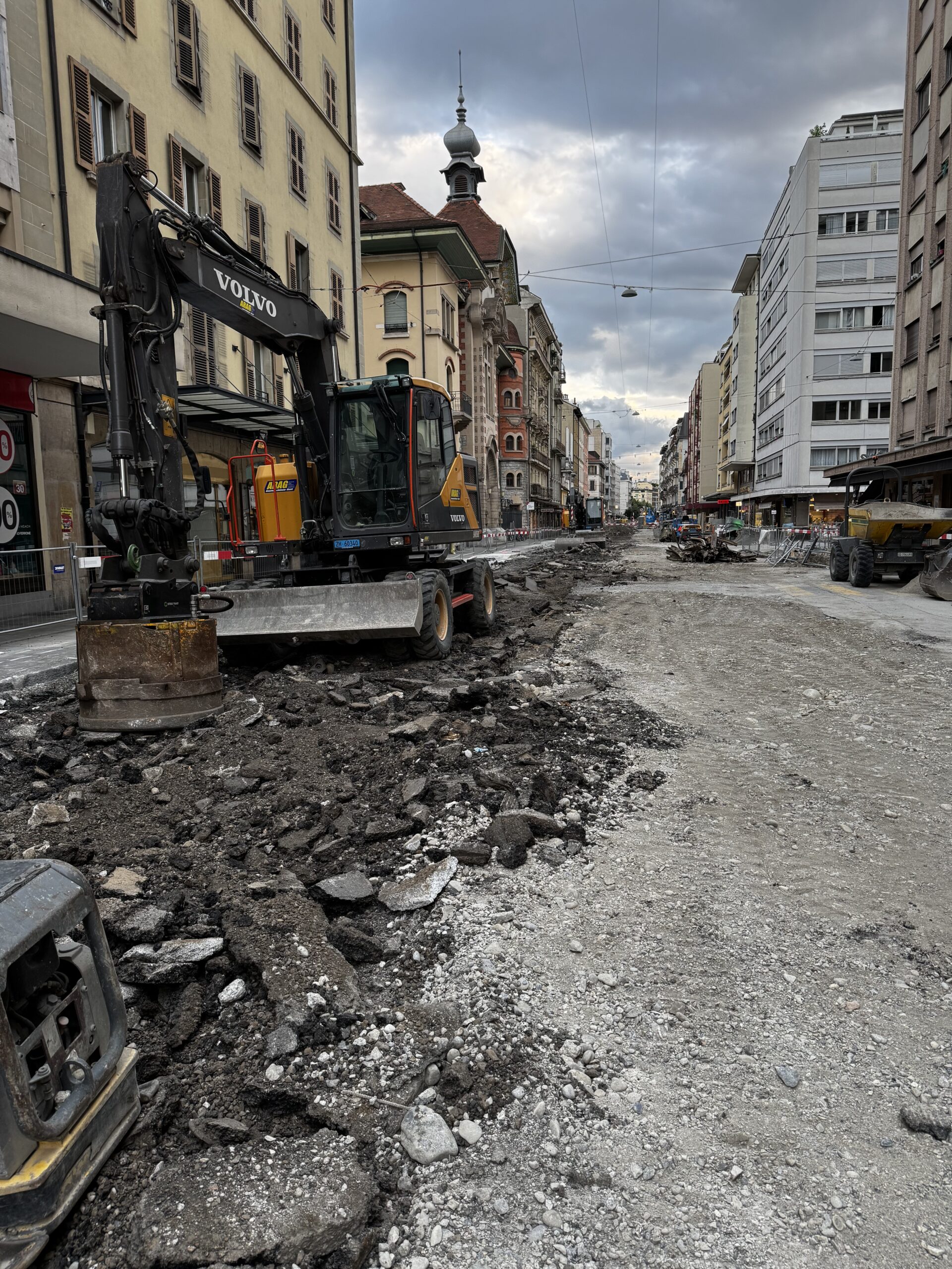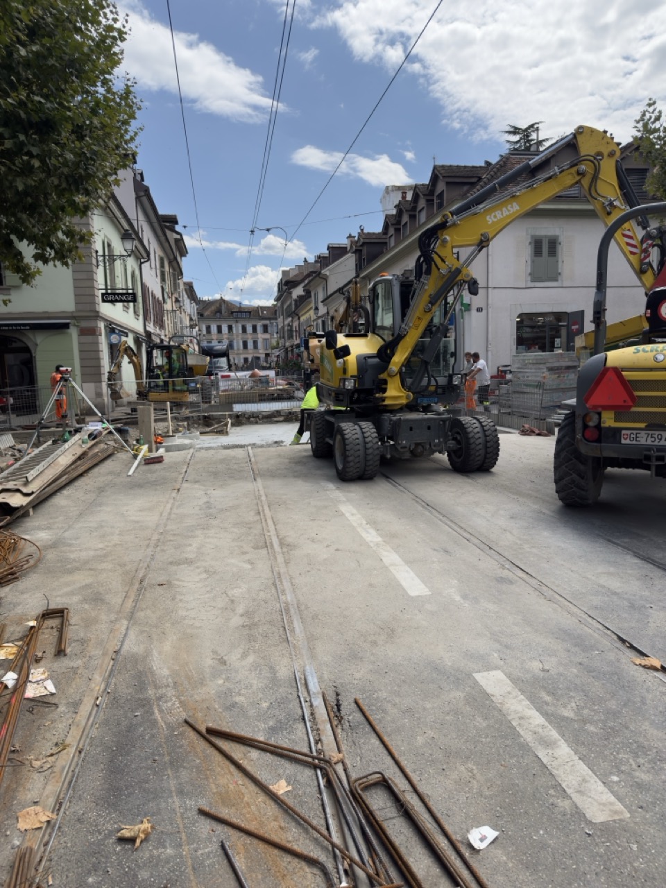 En même temps, dans le vieux Carouge, on en profite pour renouveler conduites et rails.