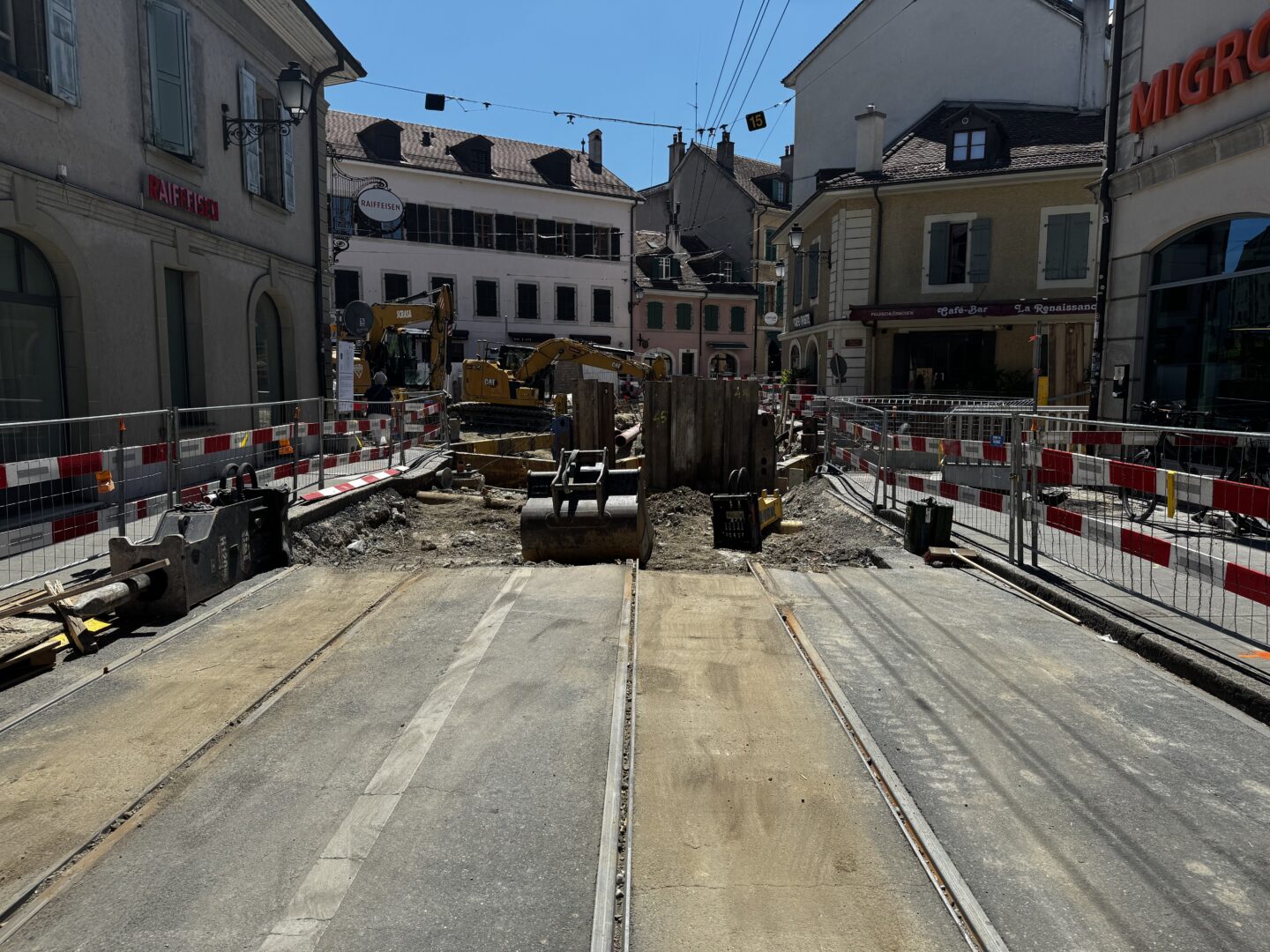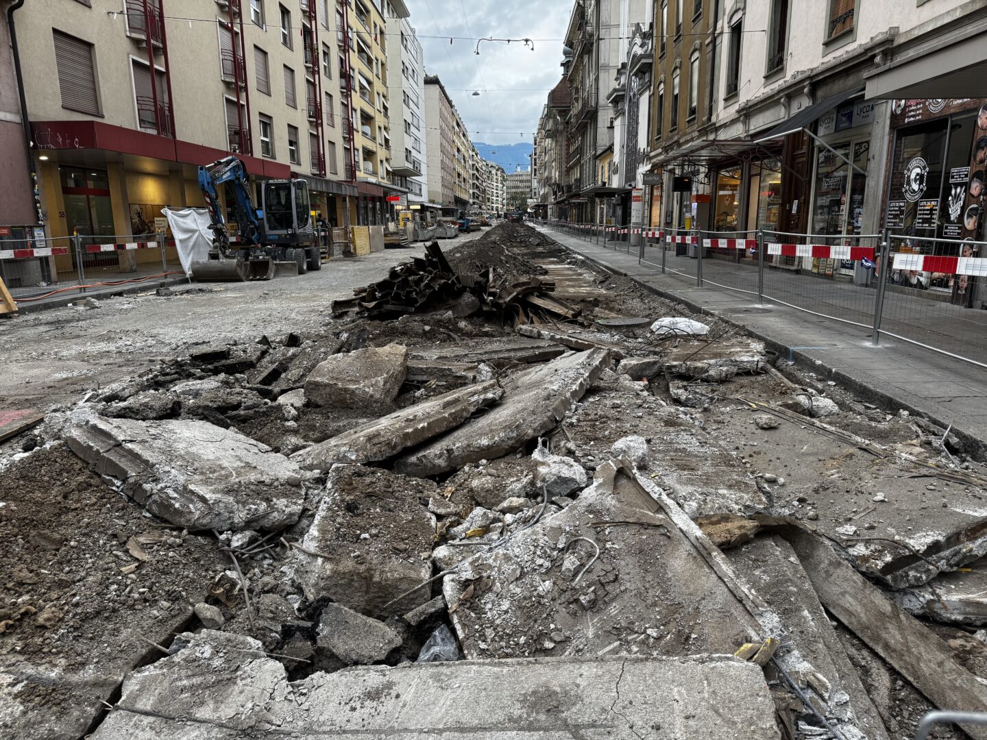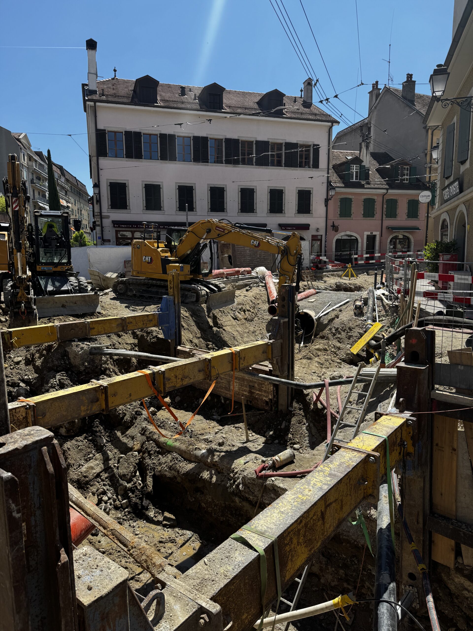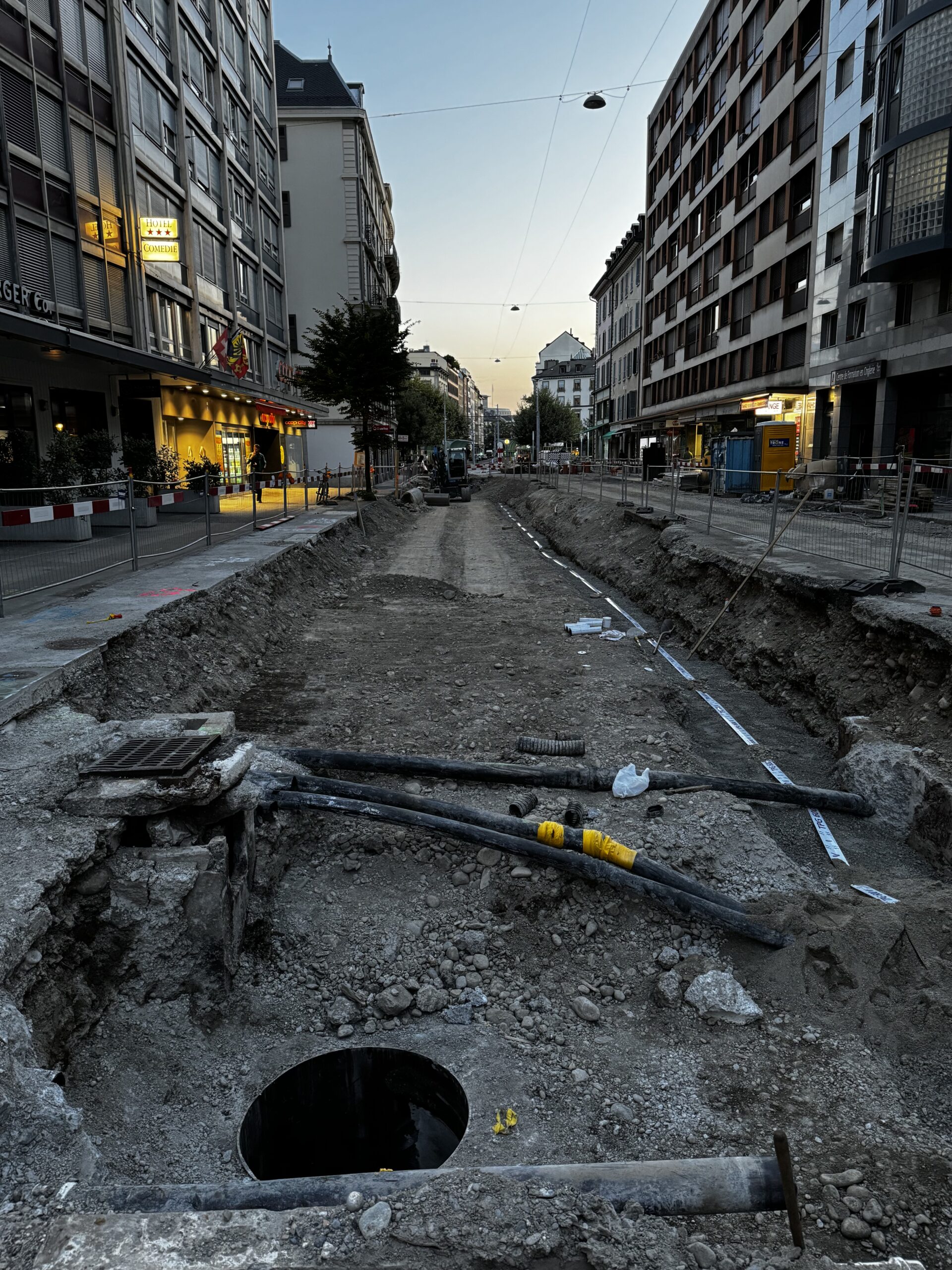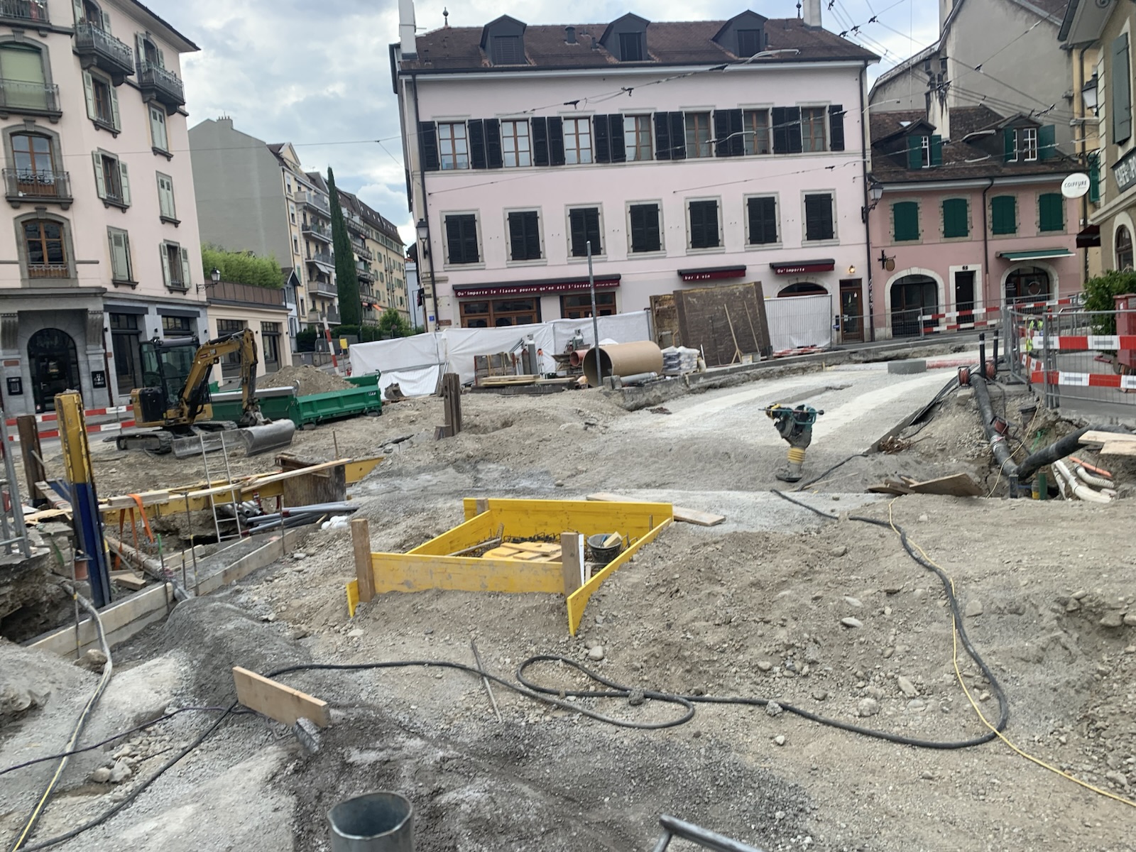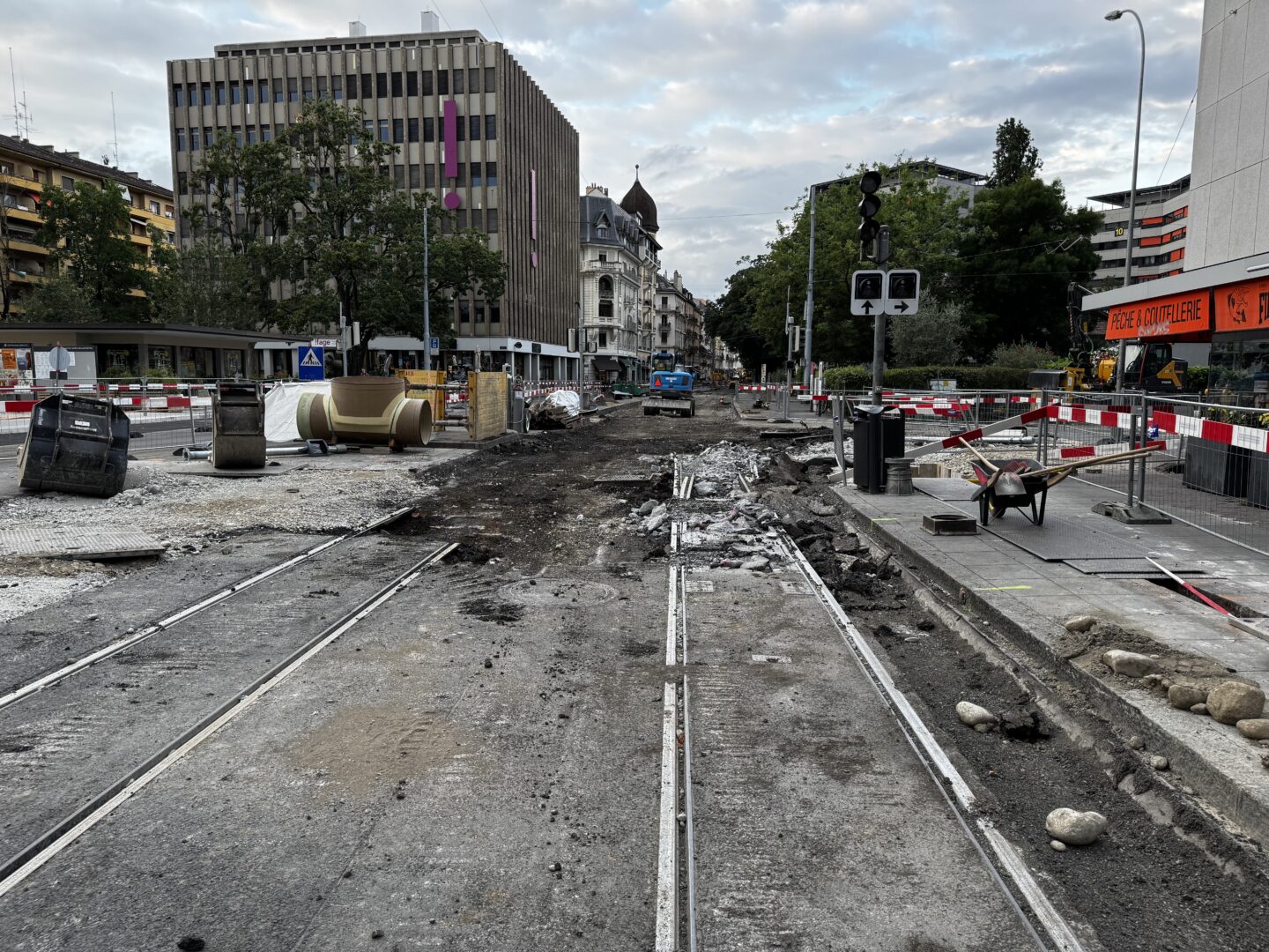 En même temps, dans le vieux Carouge, on en profite pour renouveler conduites et rails.