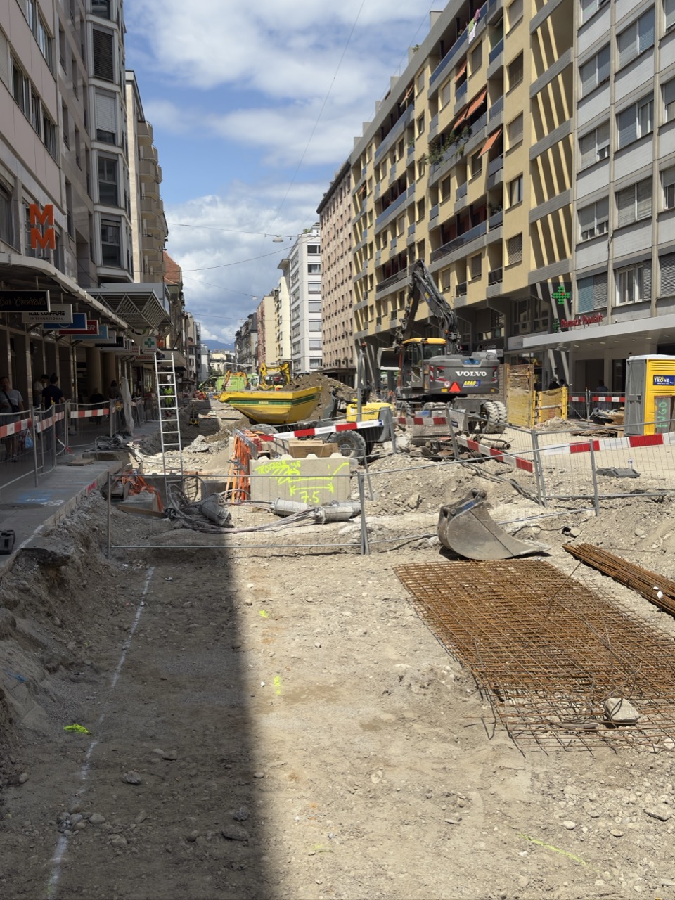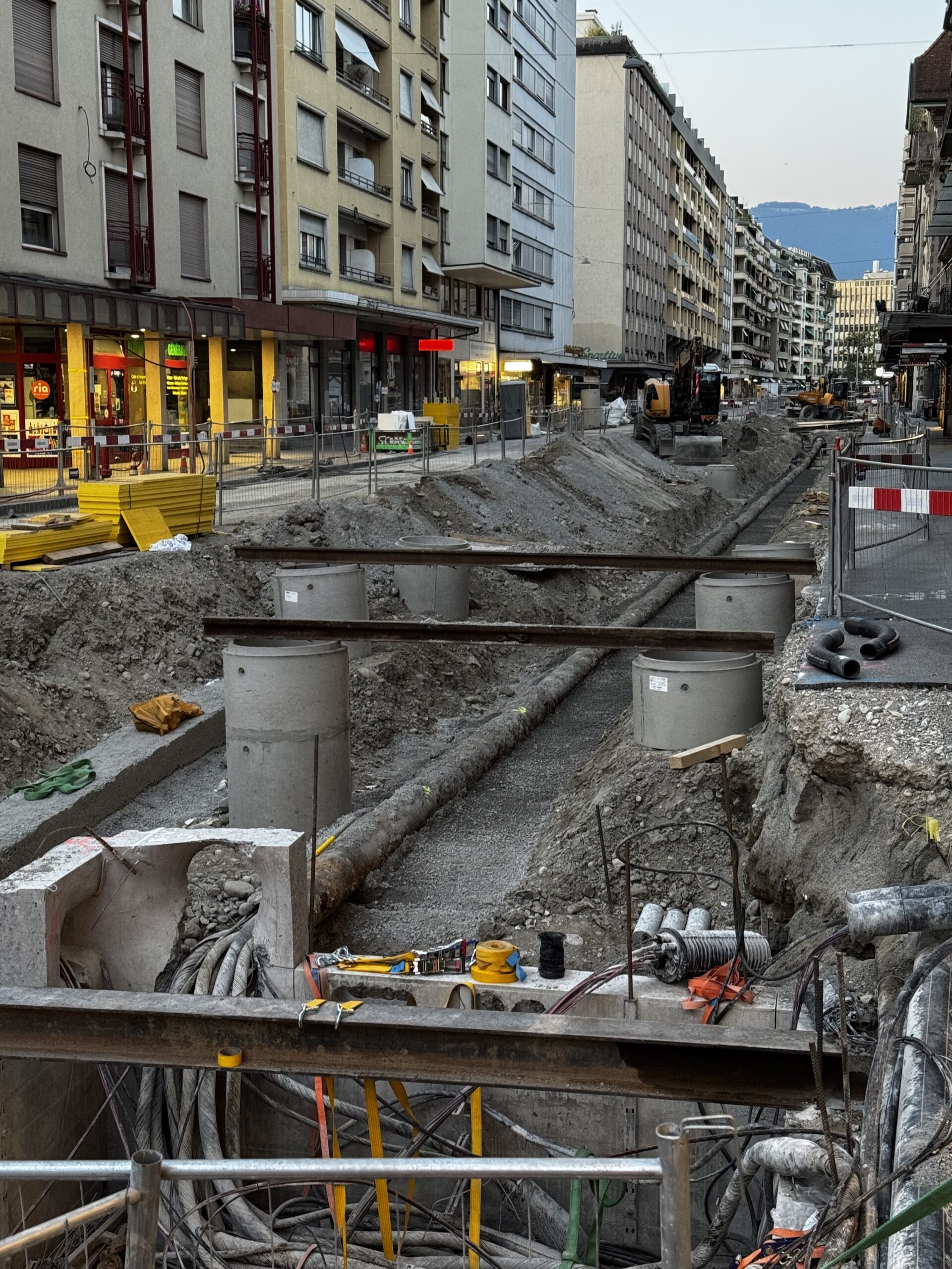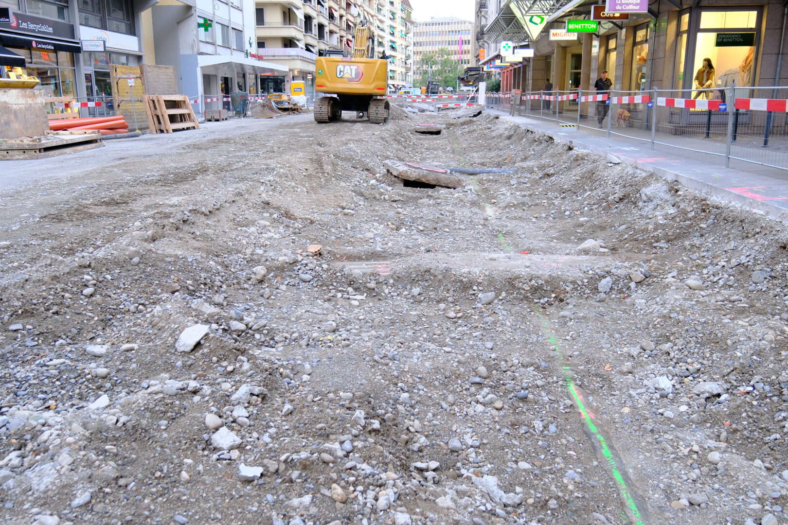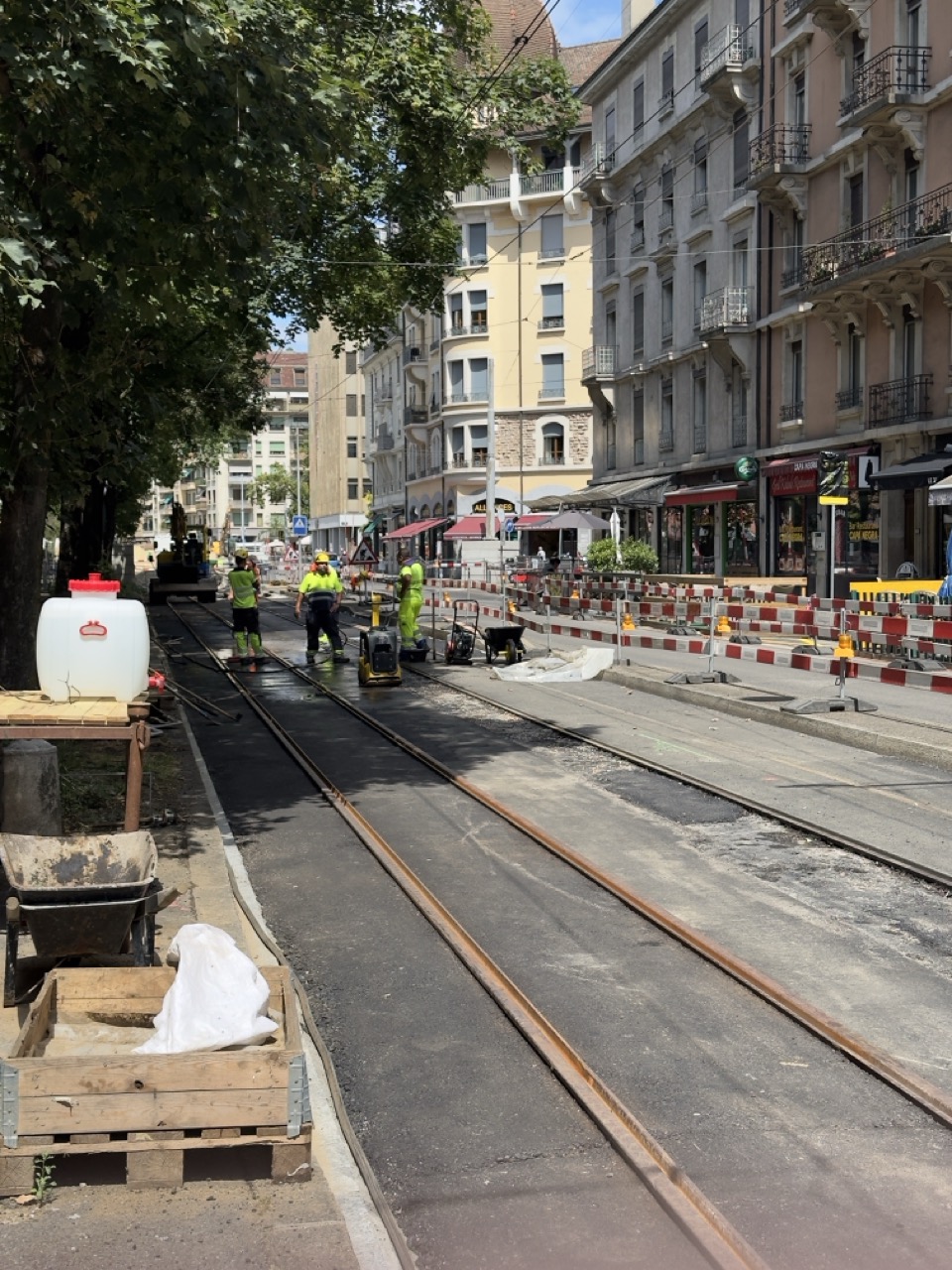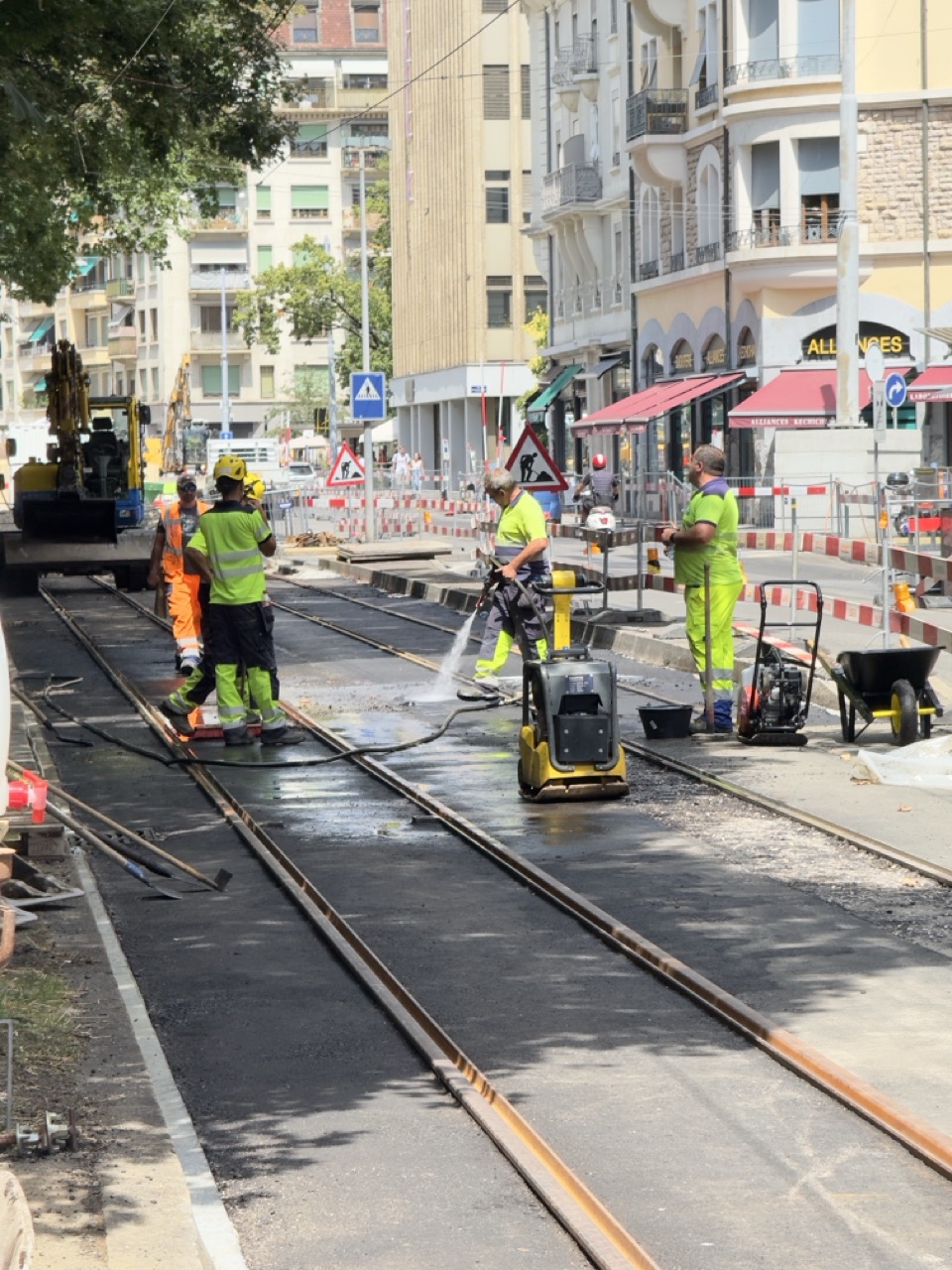 En même temps, dans le vieux Carouge, on en profite pour renouveler conduites et rails.