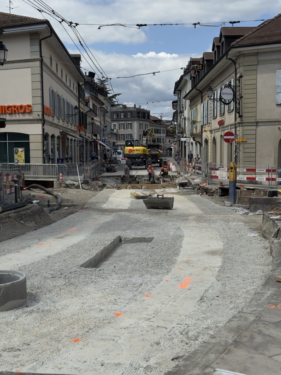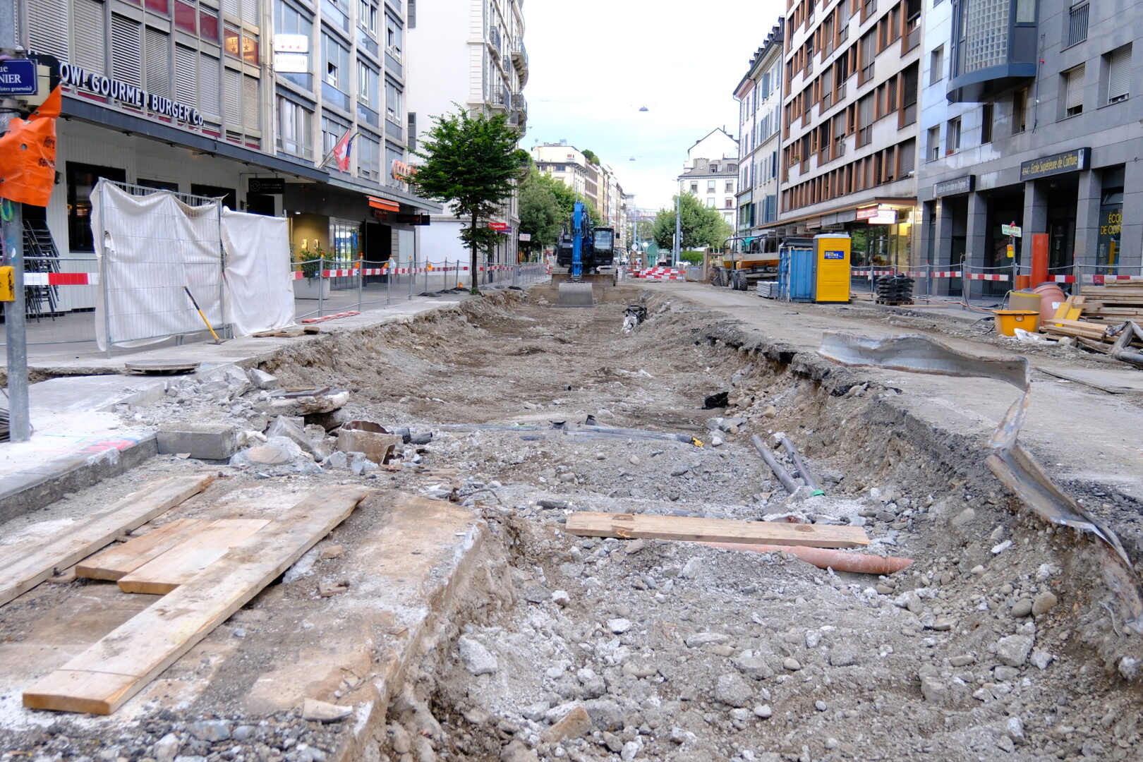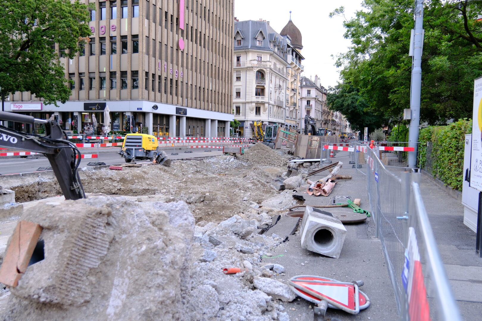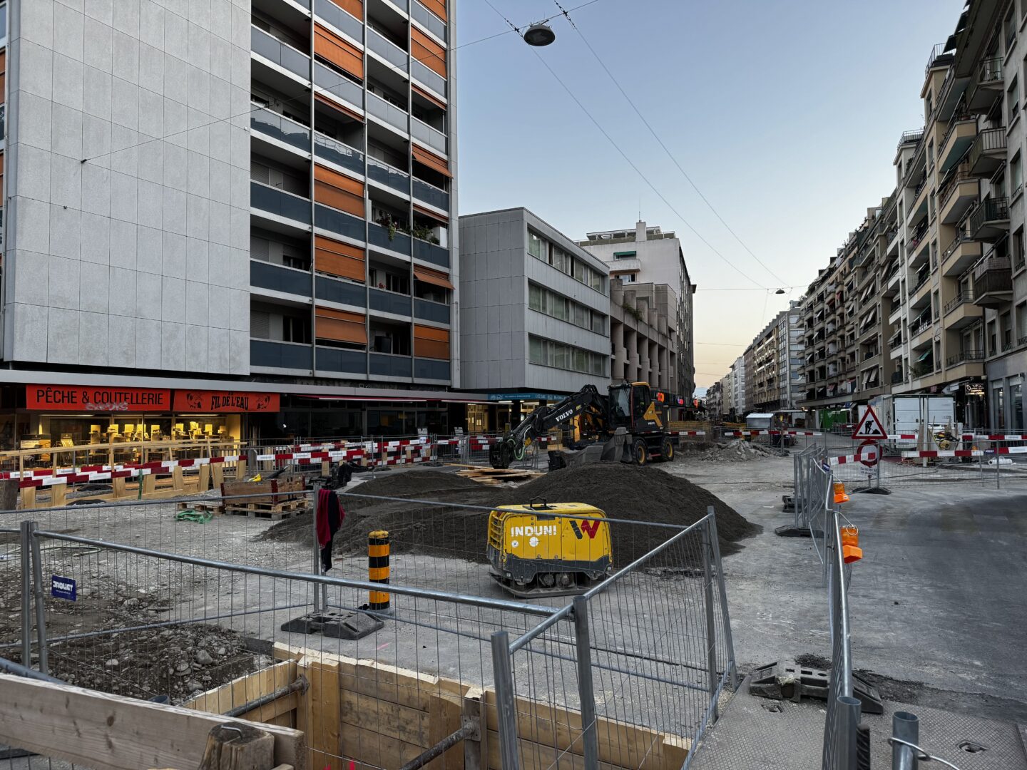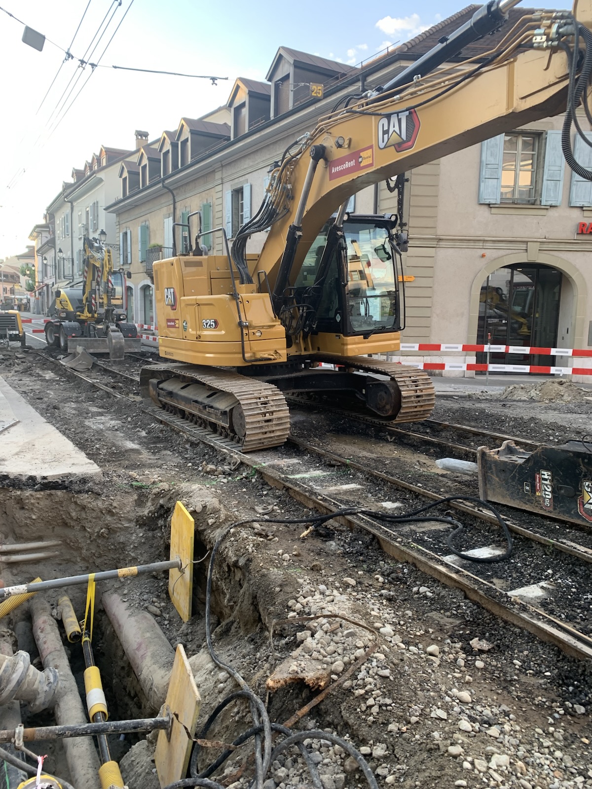 En même temps, dans le vieux Carouge, on en profite pour renouveler conduites et rails.