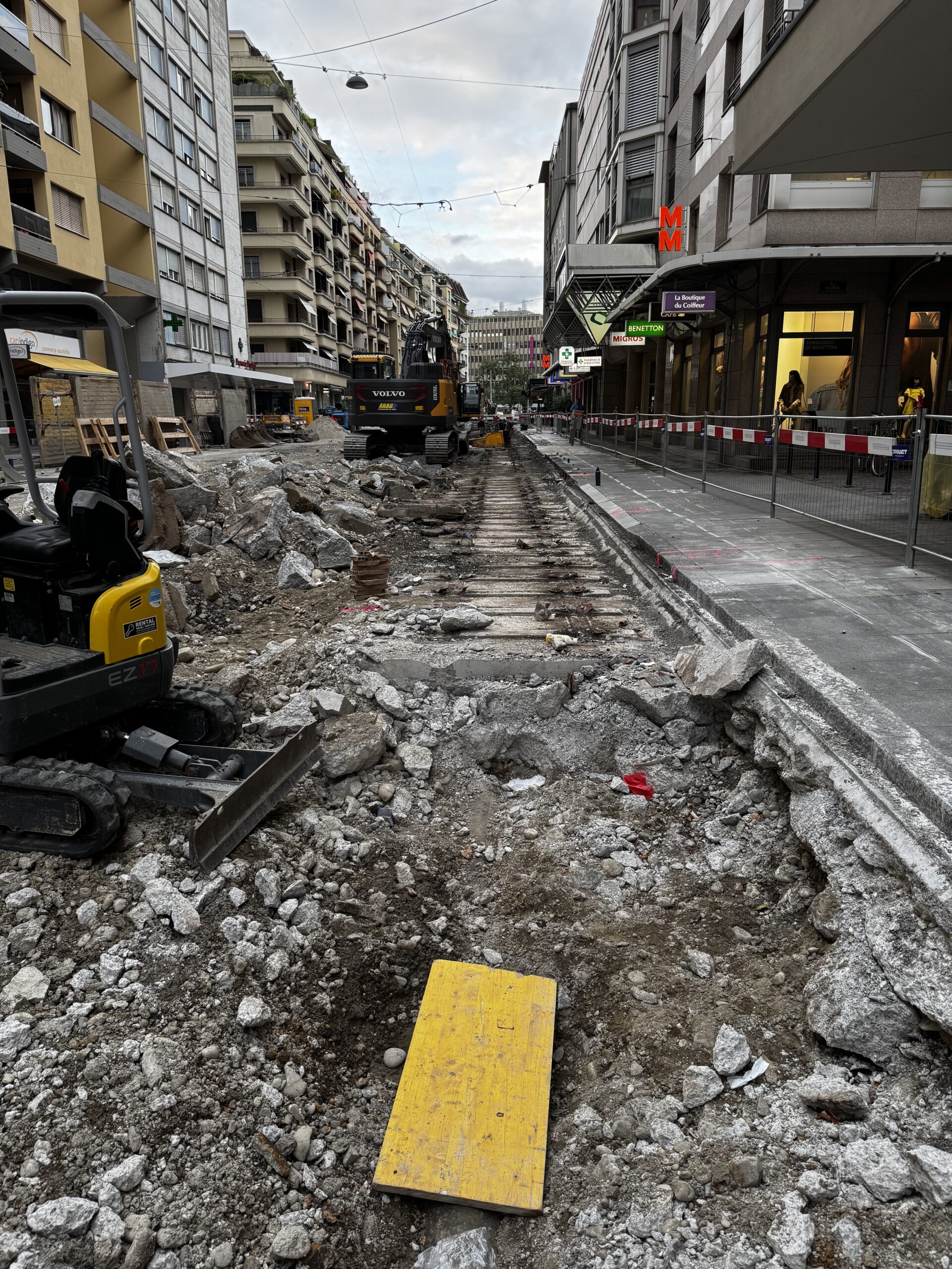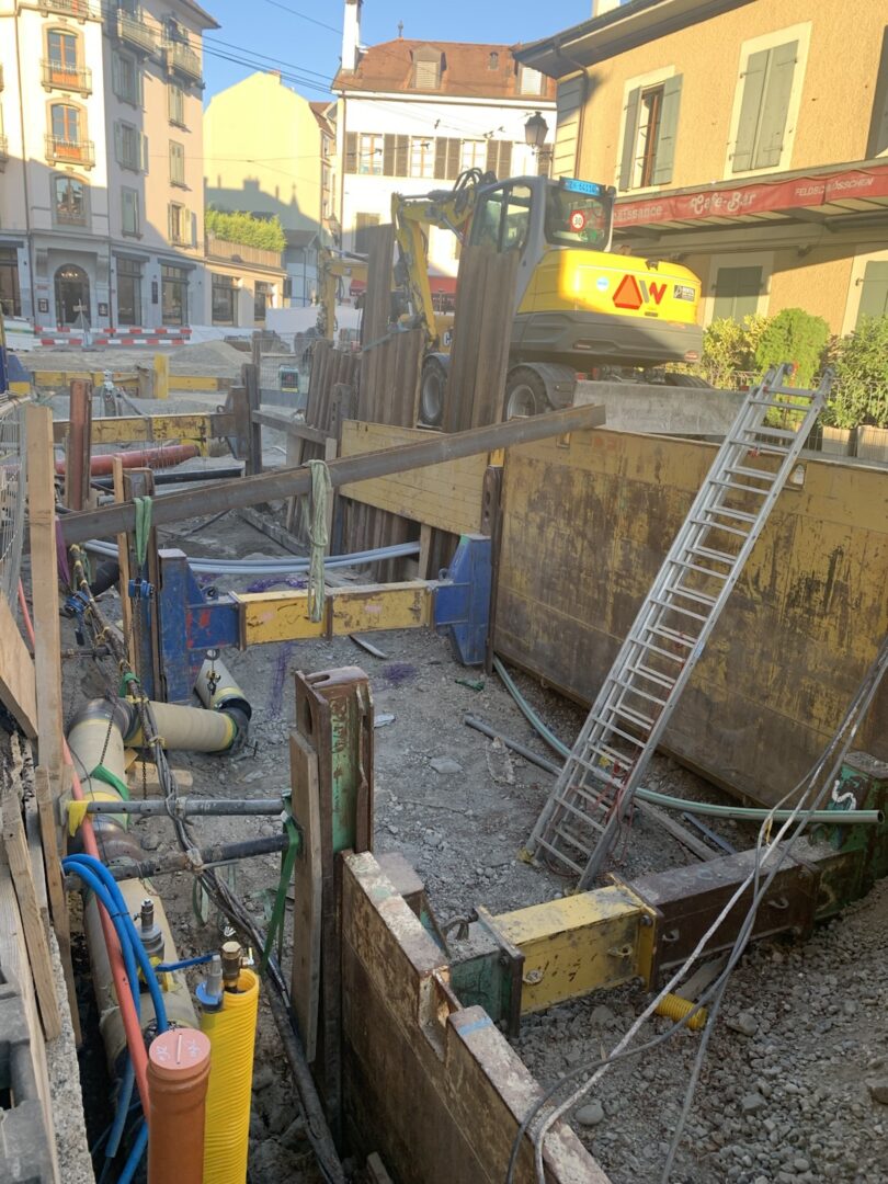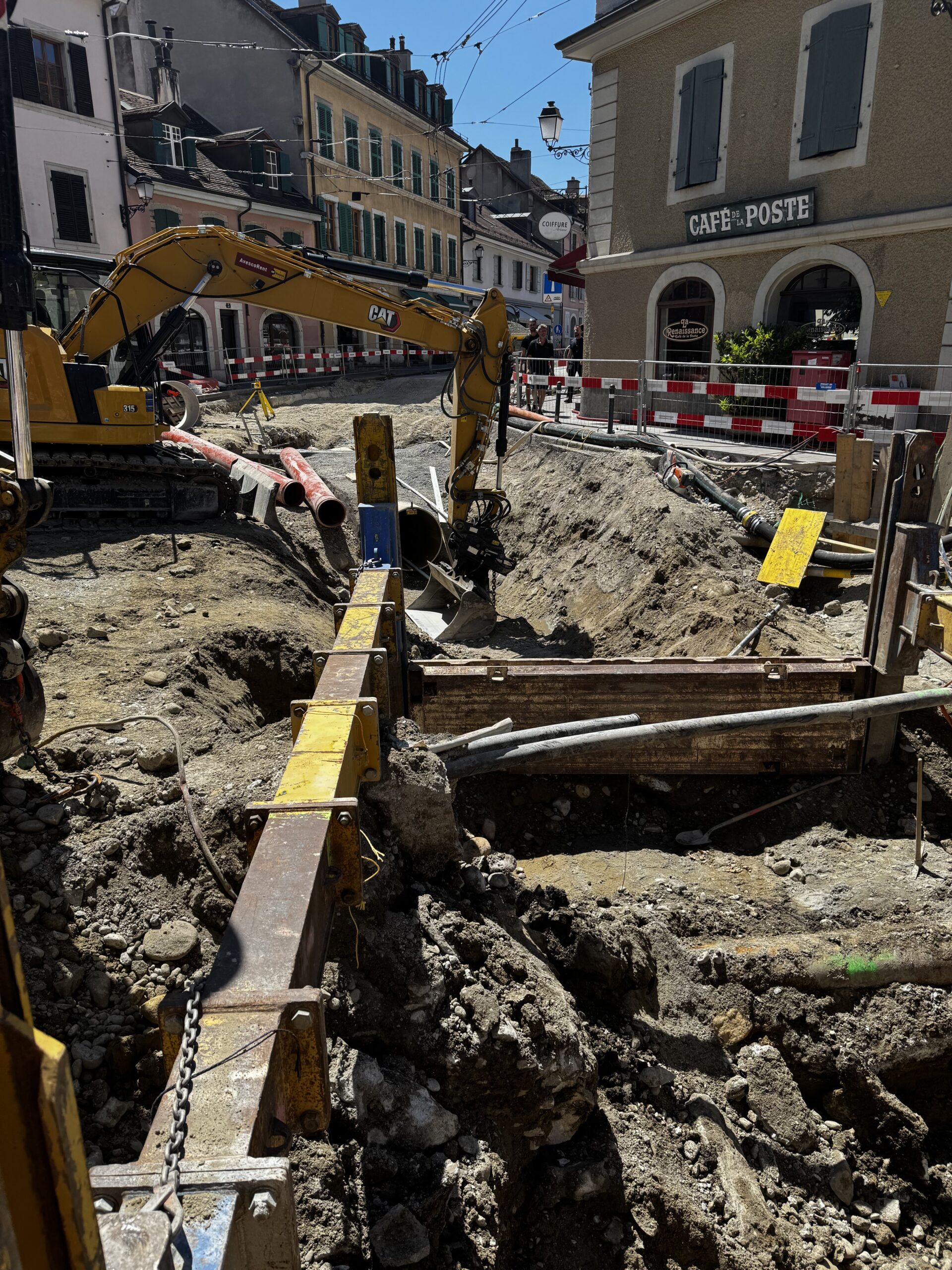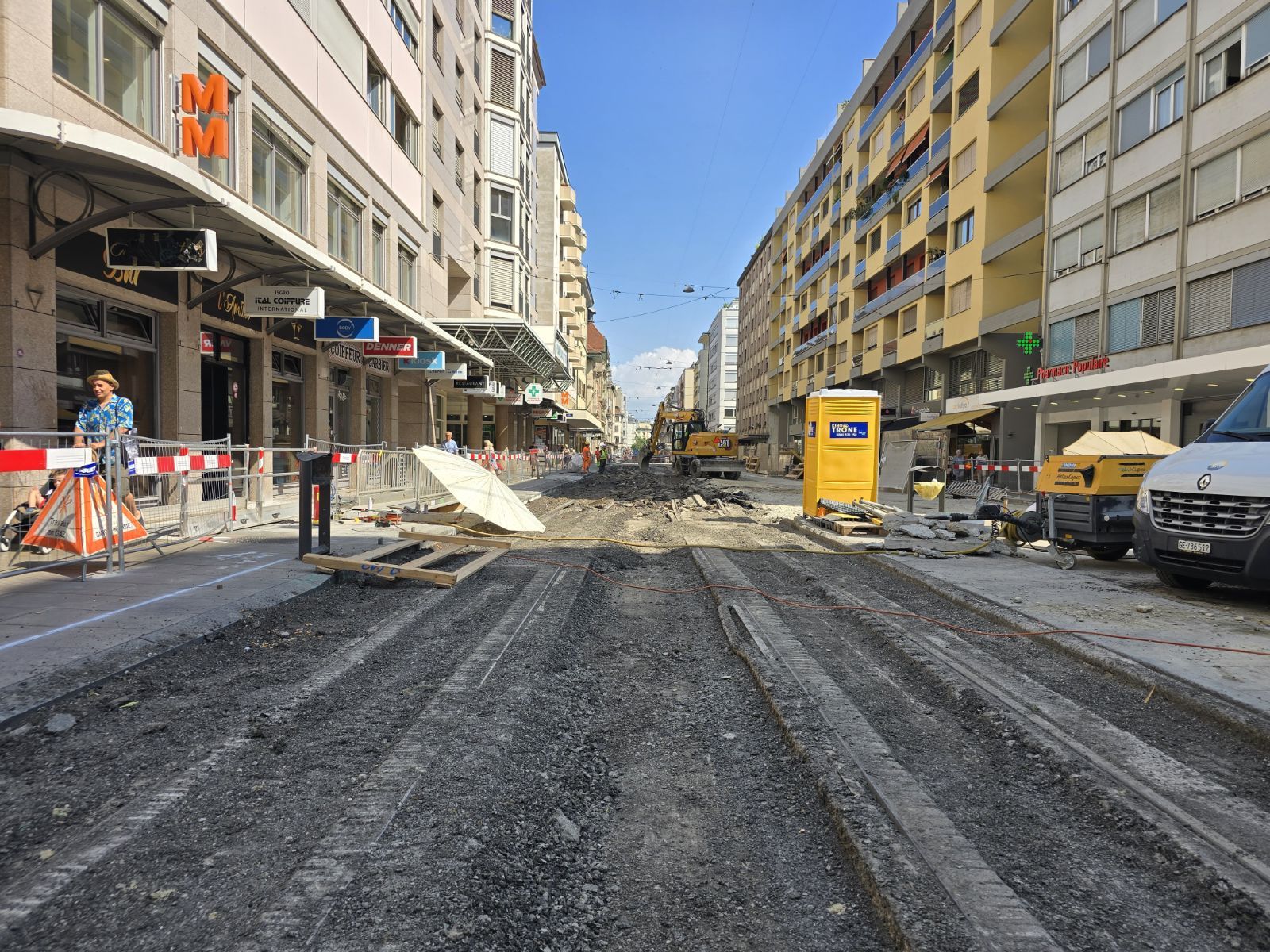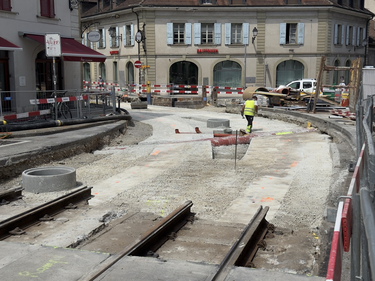 En même temps, dans le vieux Carouge, on en profite pour renouveler conduites et rails.