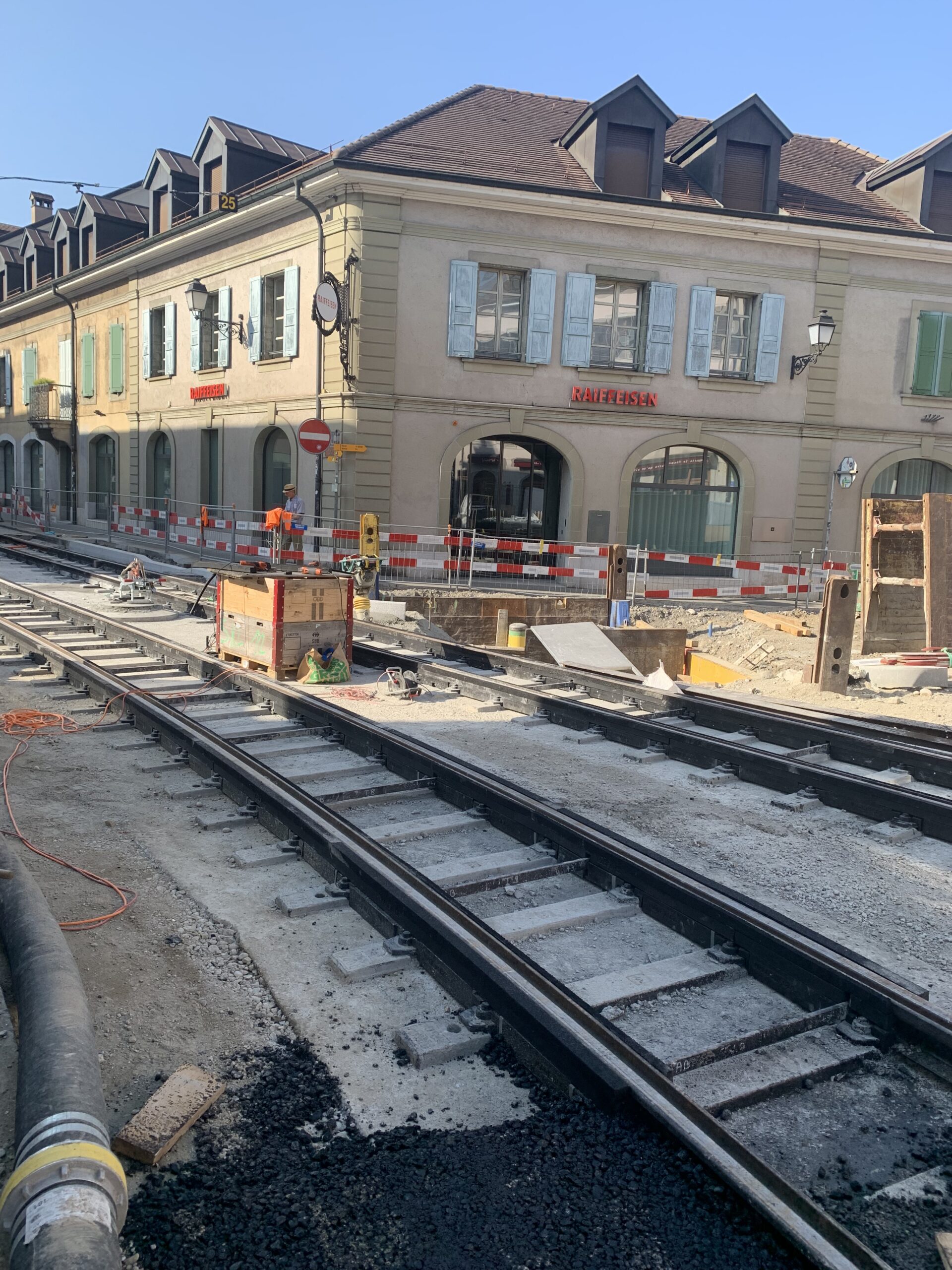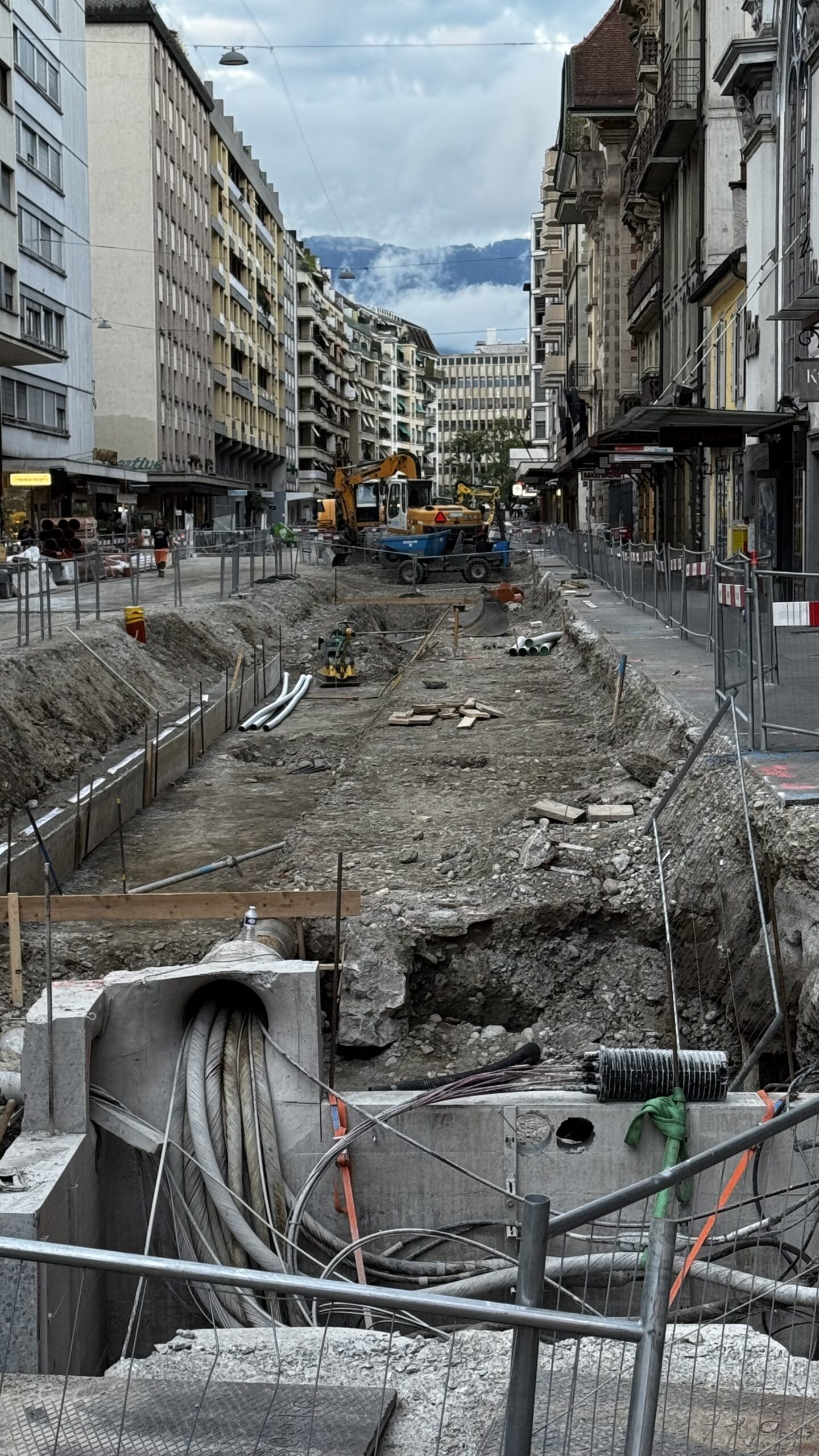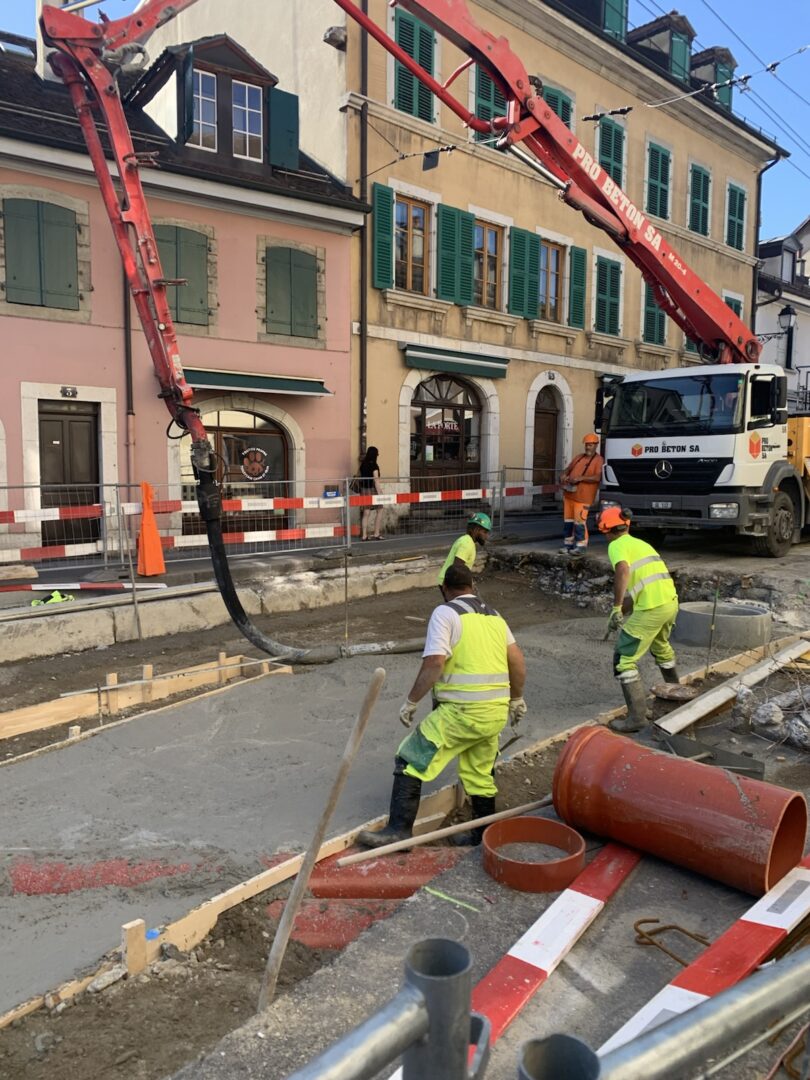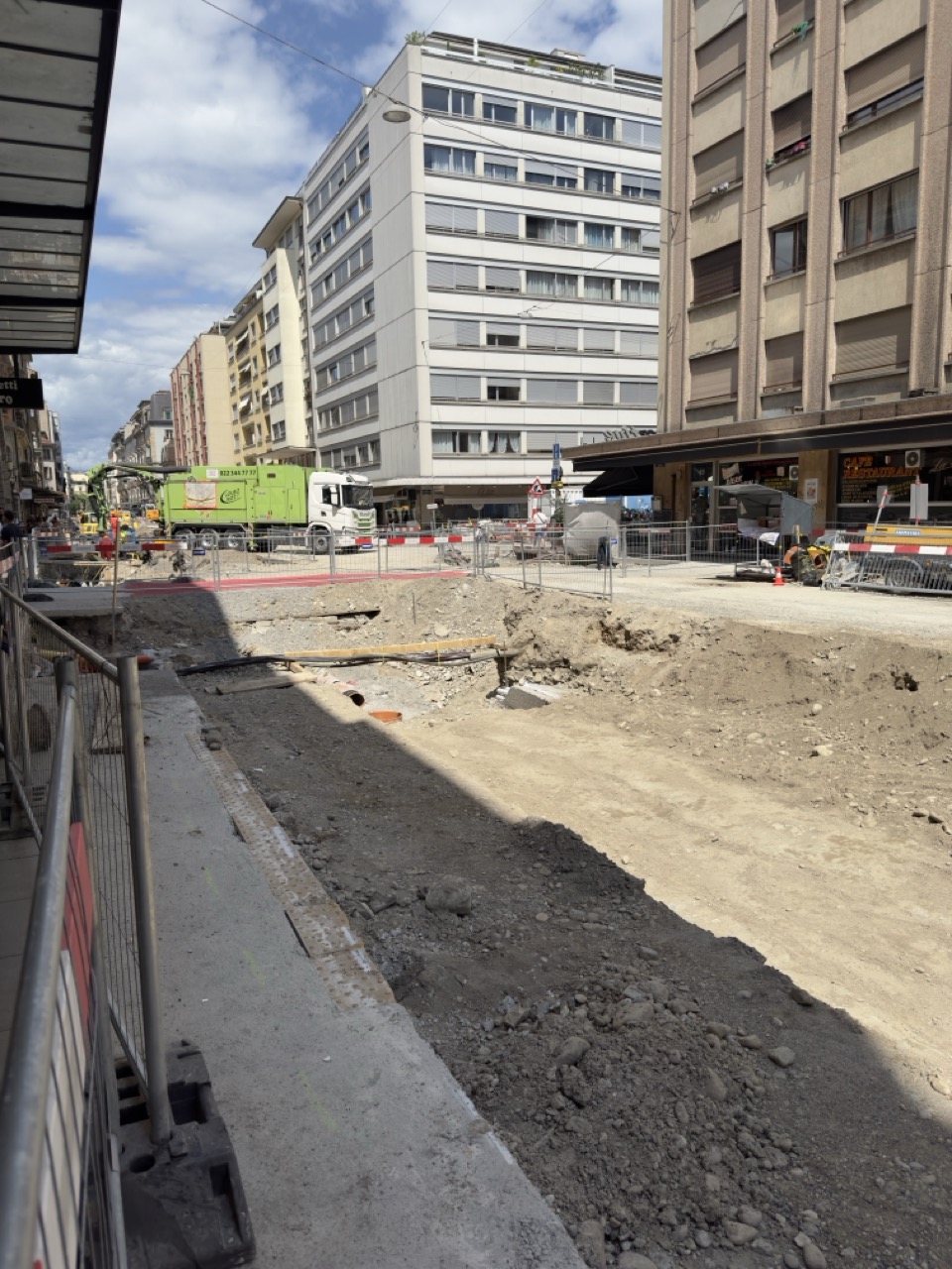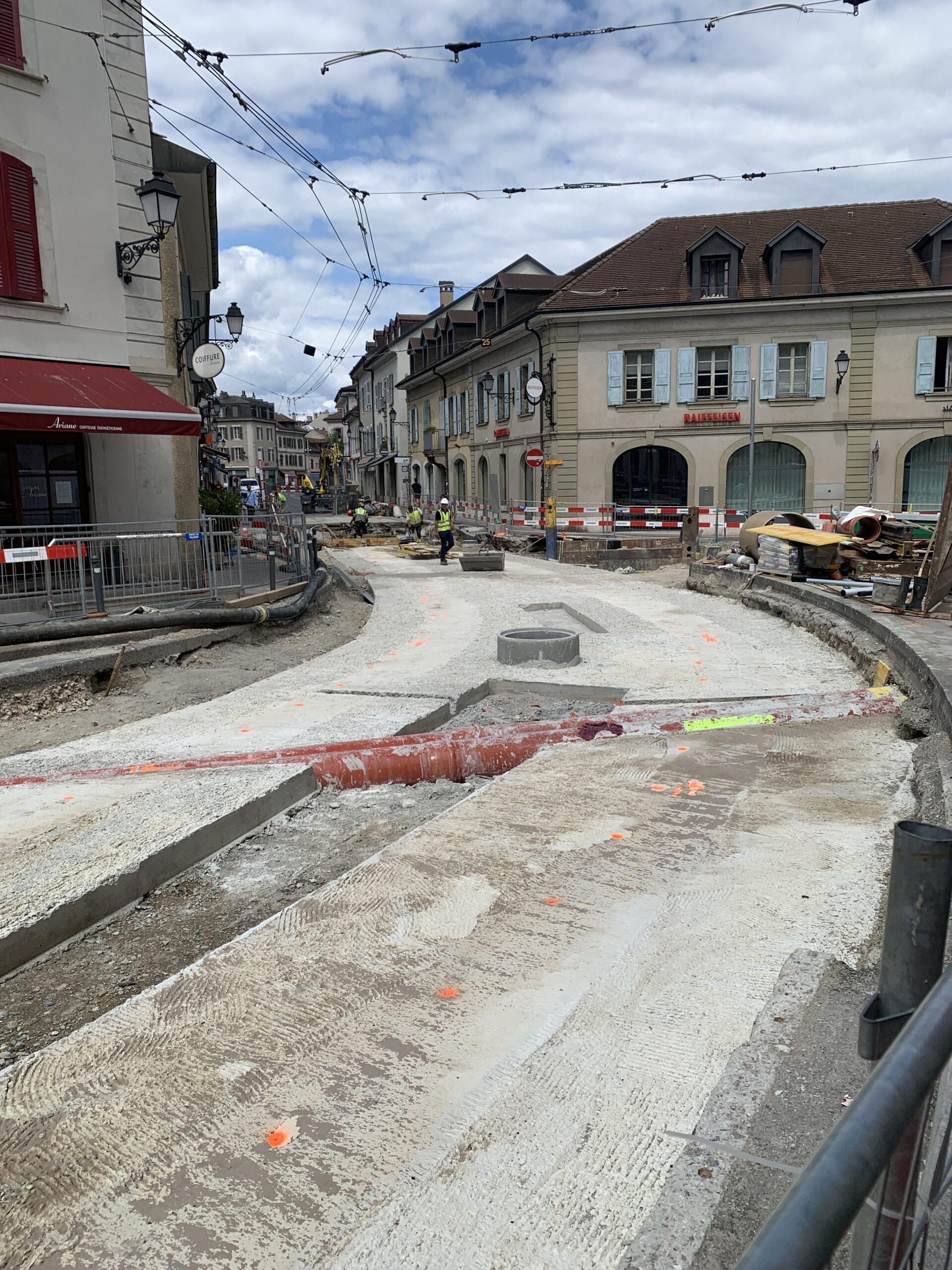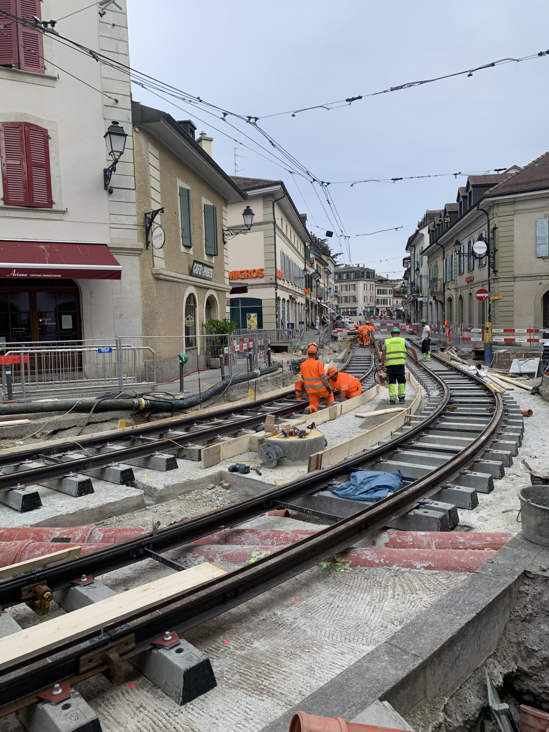 En même temps, dans le vieux Carouge, on en profite pour renouveler conduites et rails.