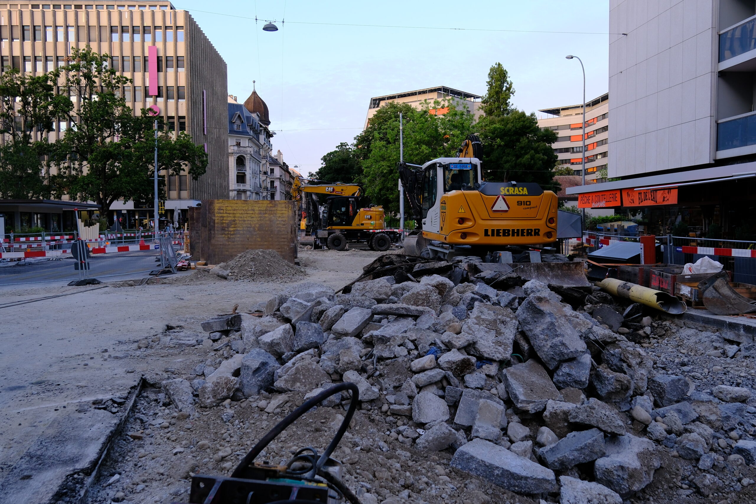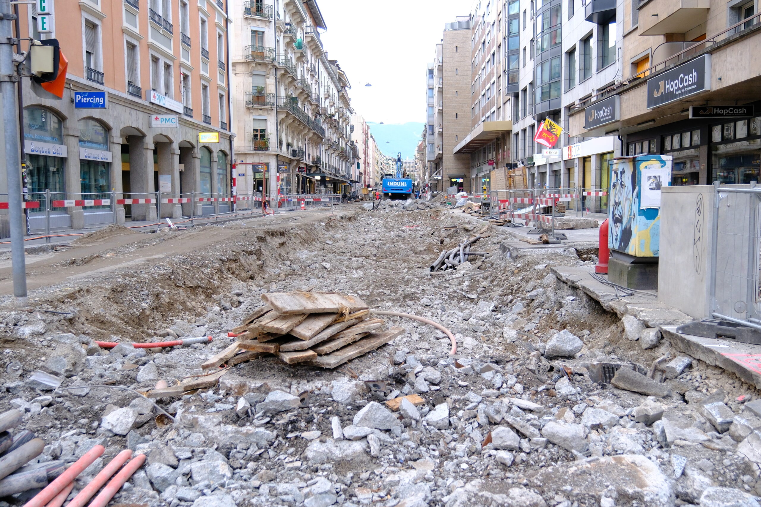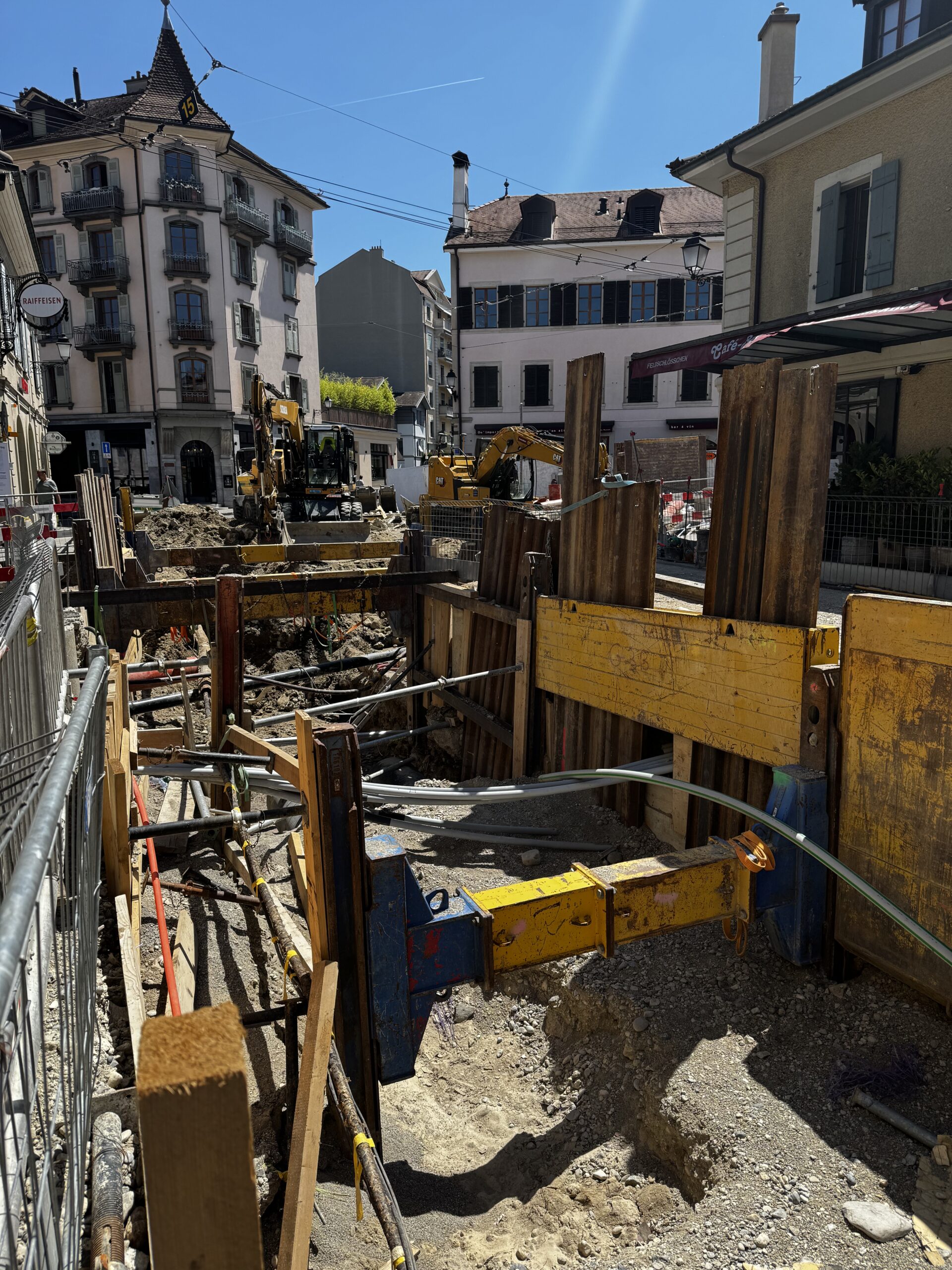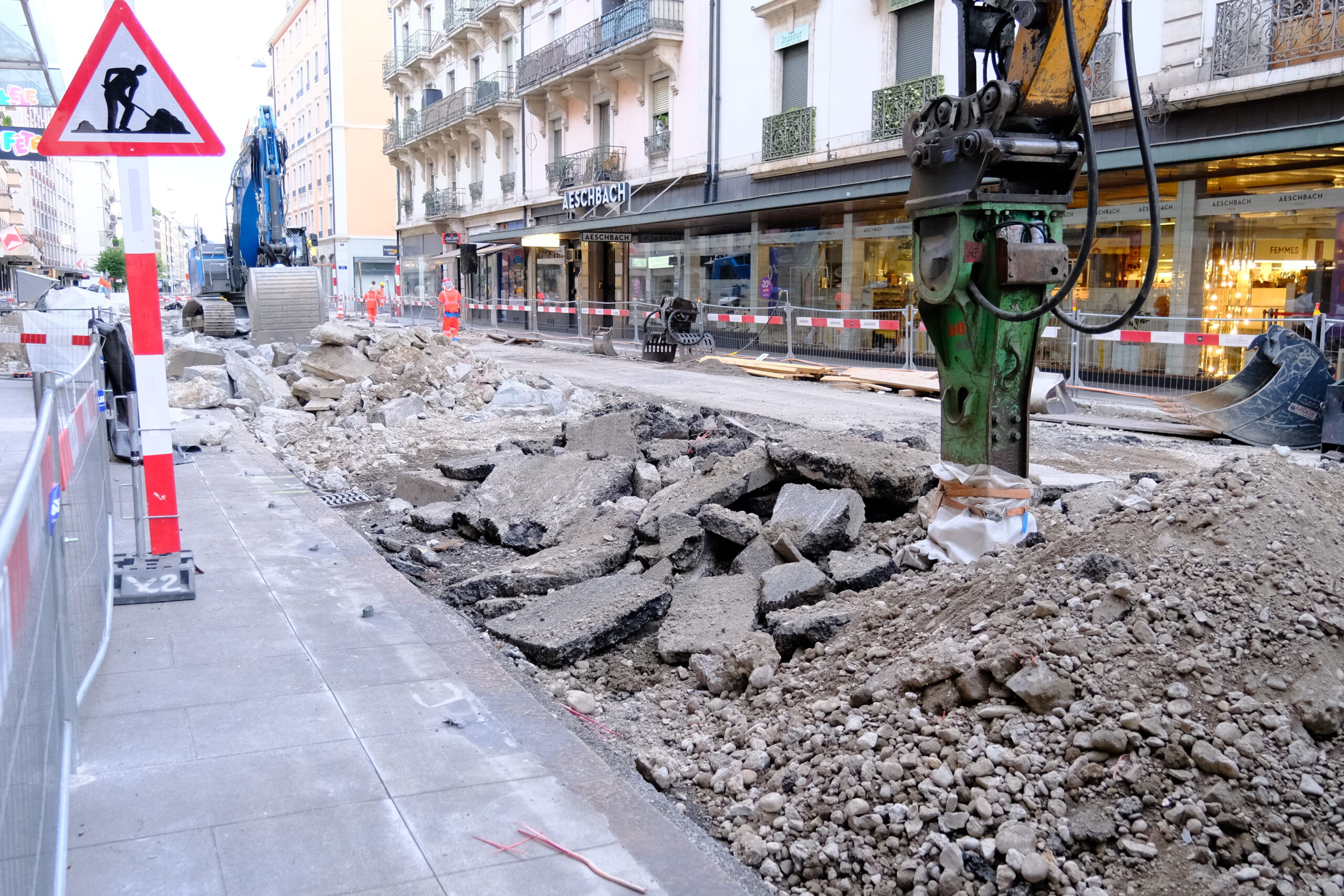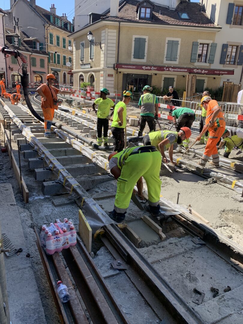 En même temps, dans le vieux Carouge, on en profite pour renouveler conduites et rails.