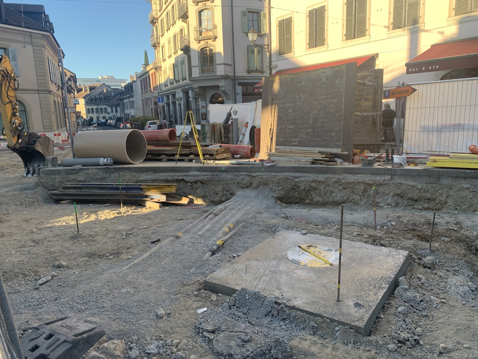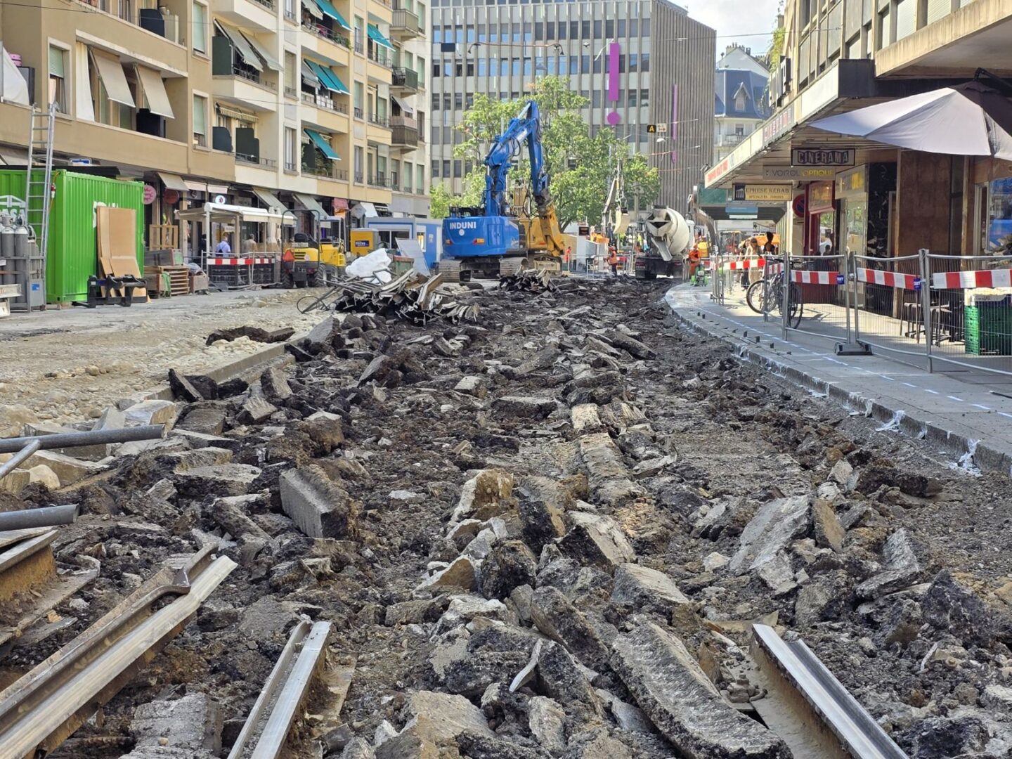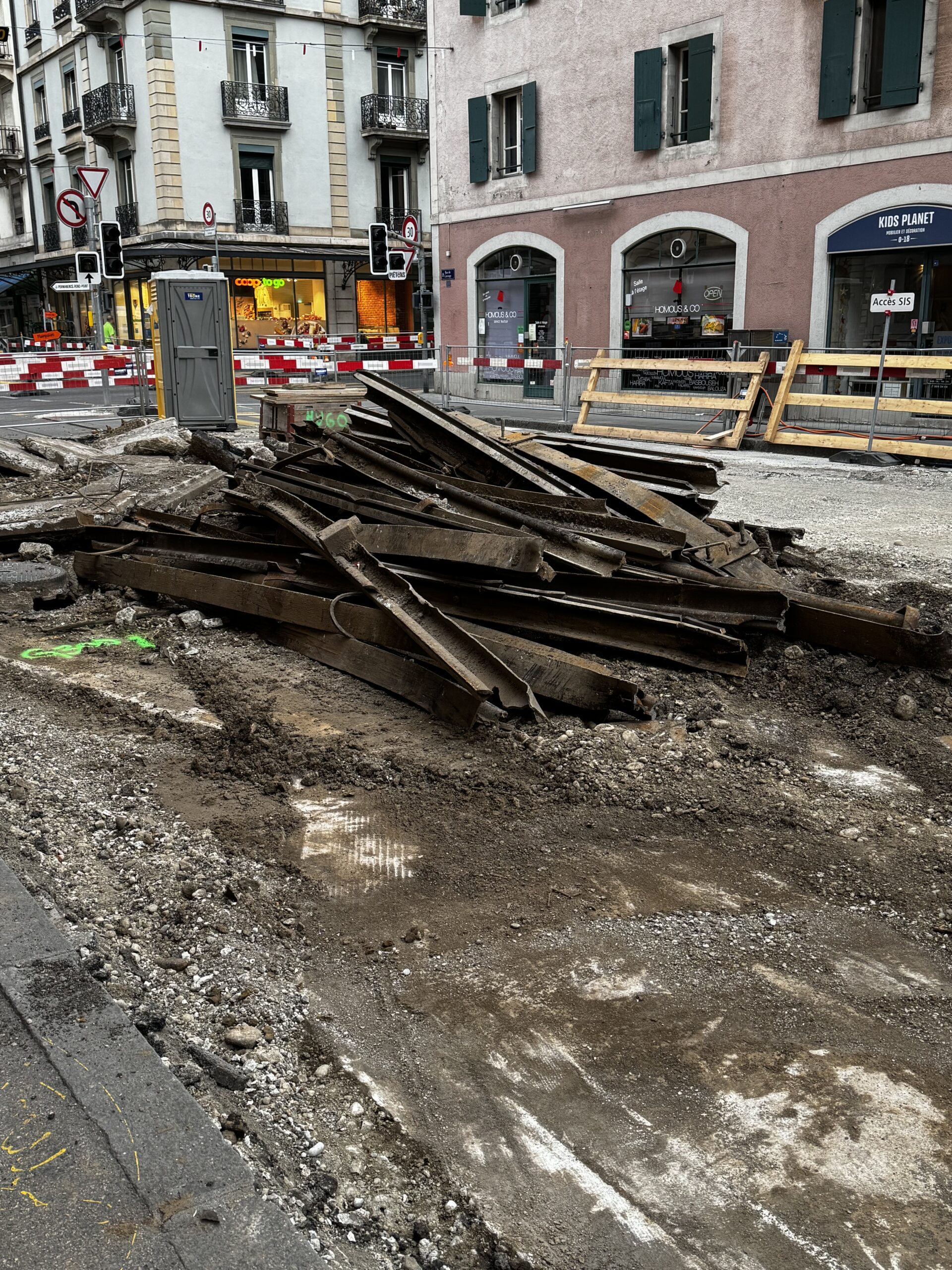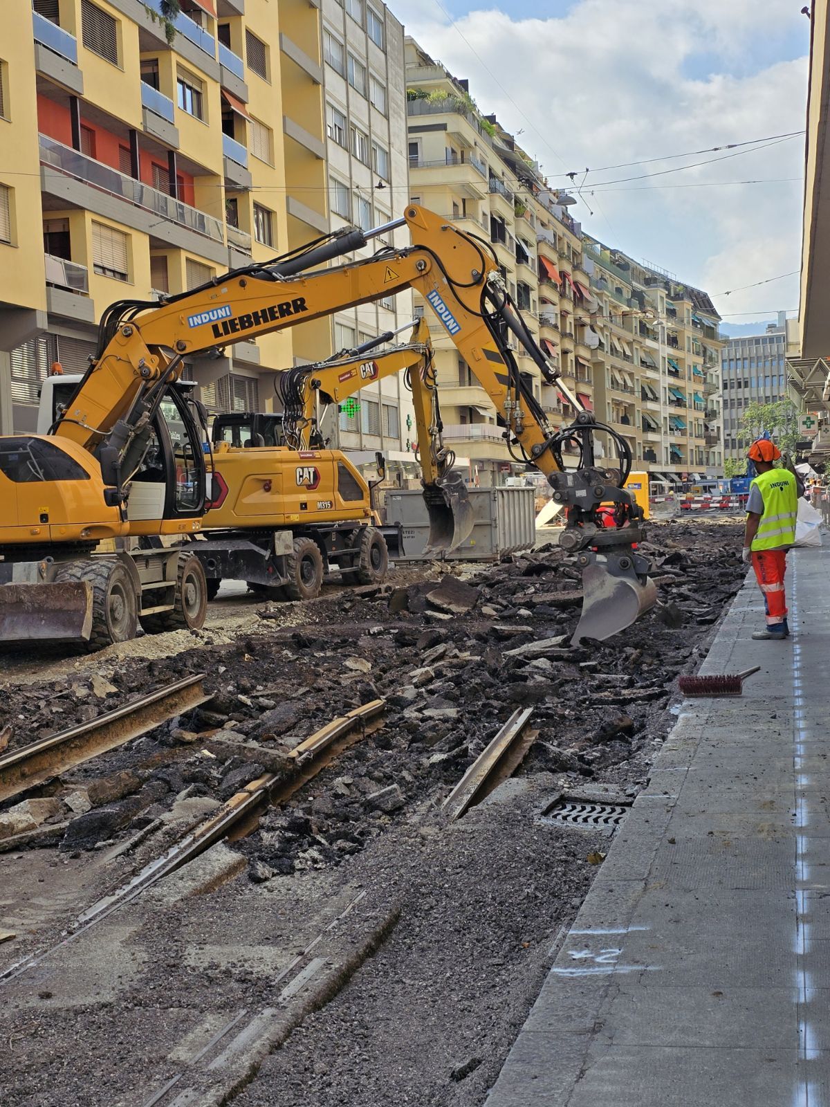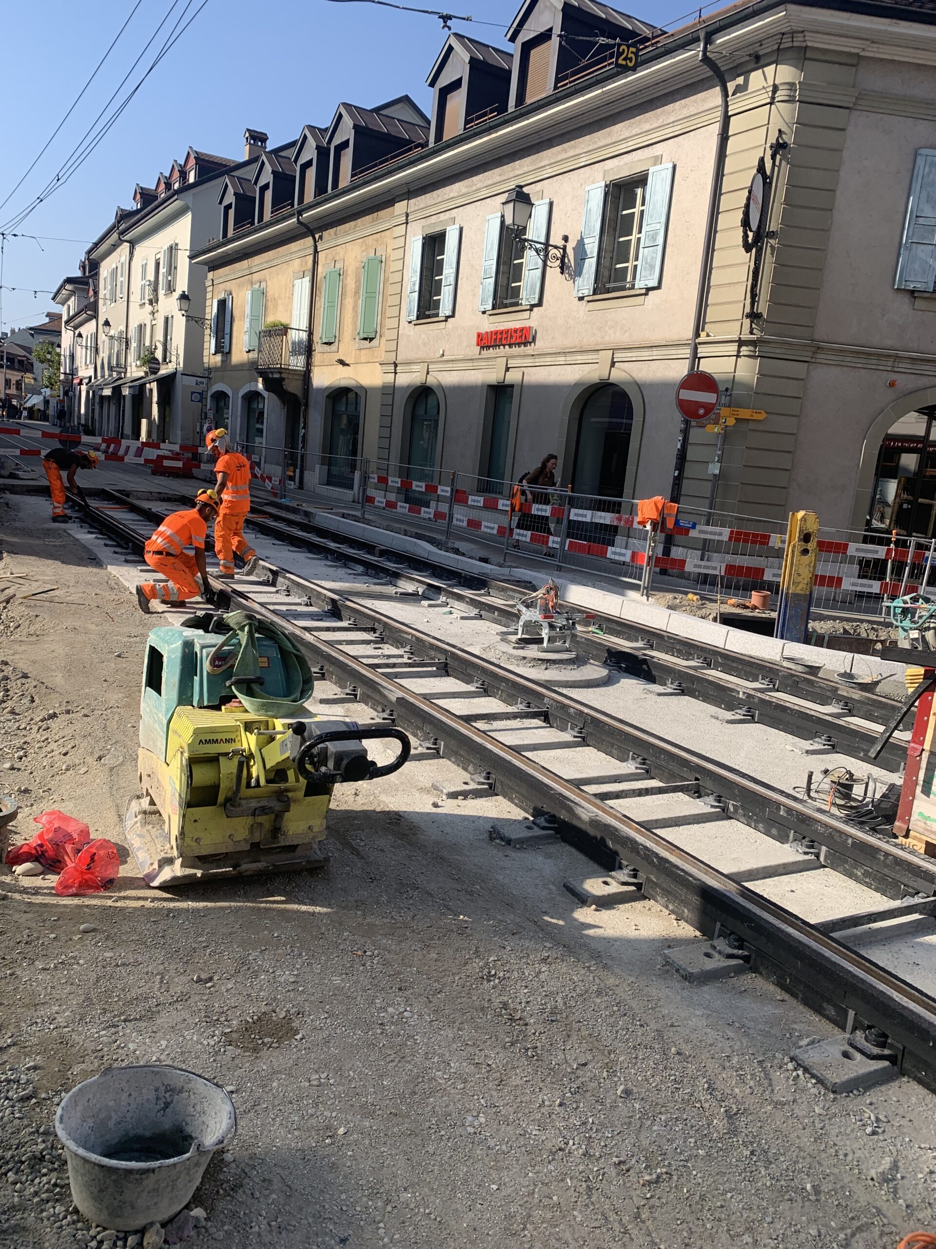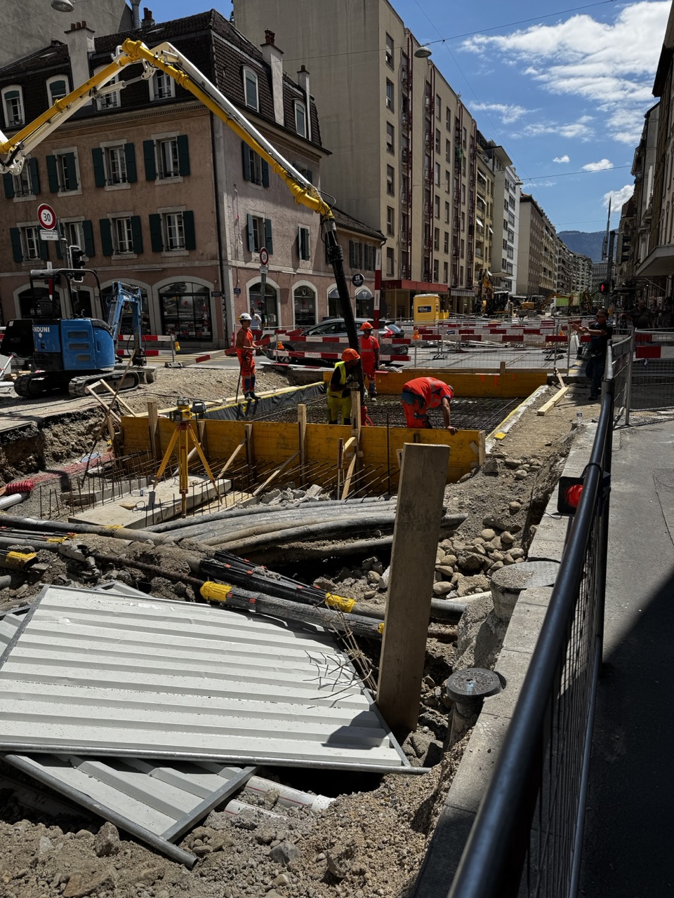 En même temps, dans le vieux Carouge, on en profite pour renouveler conduites et rails.