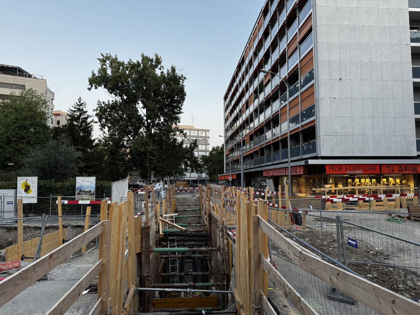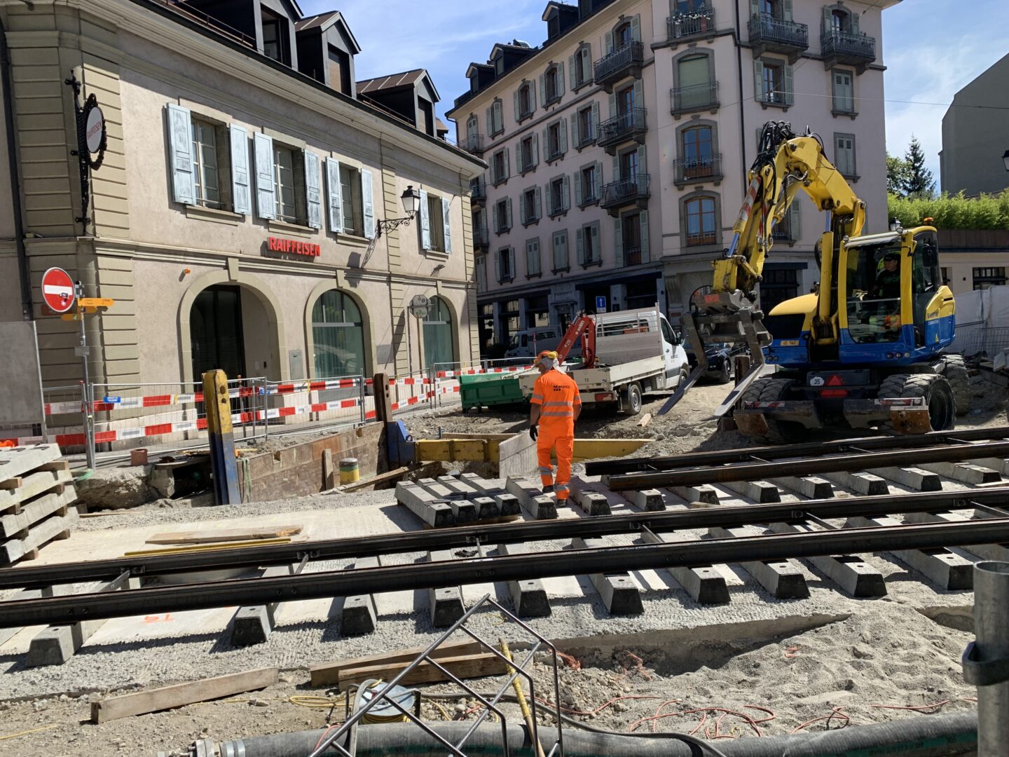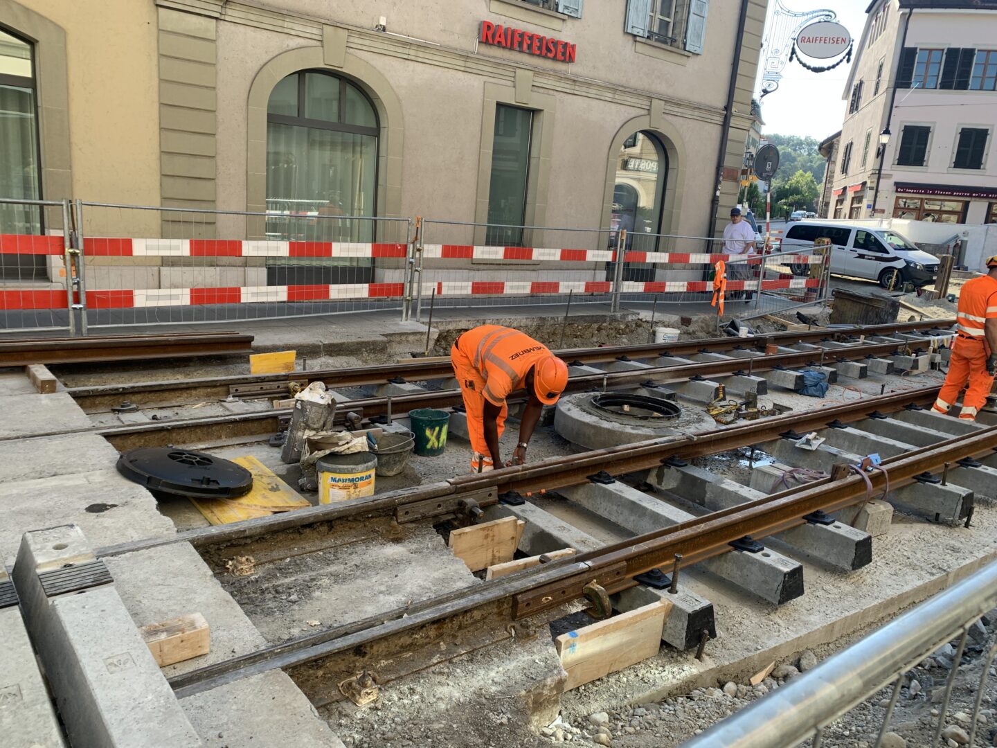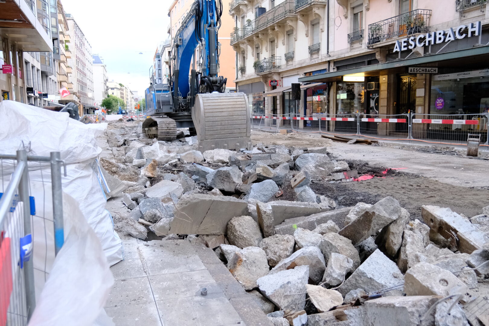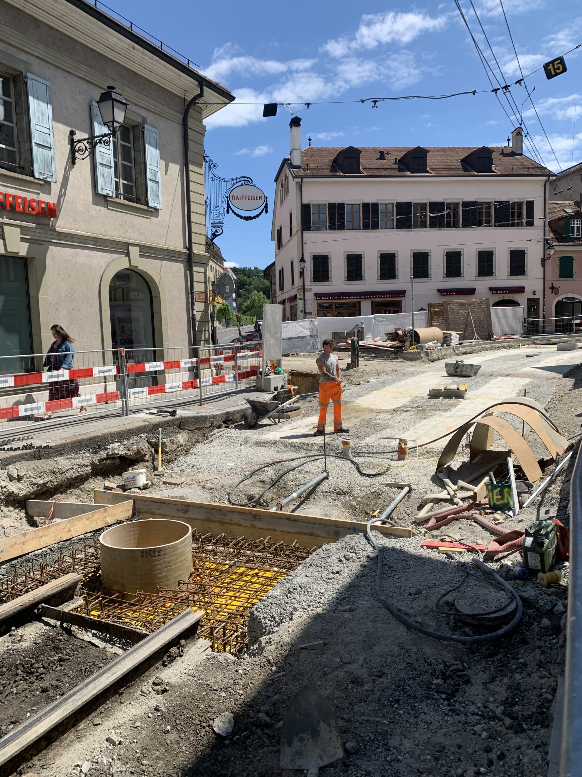 En même temps, dans le vieux Carouge, on en profite pour renouveler conduites et rails.
