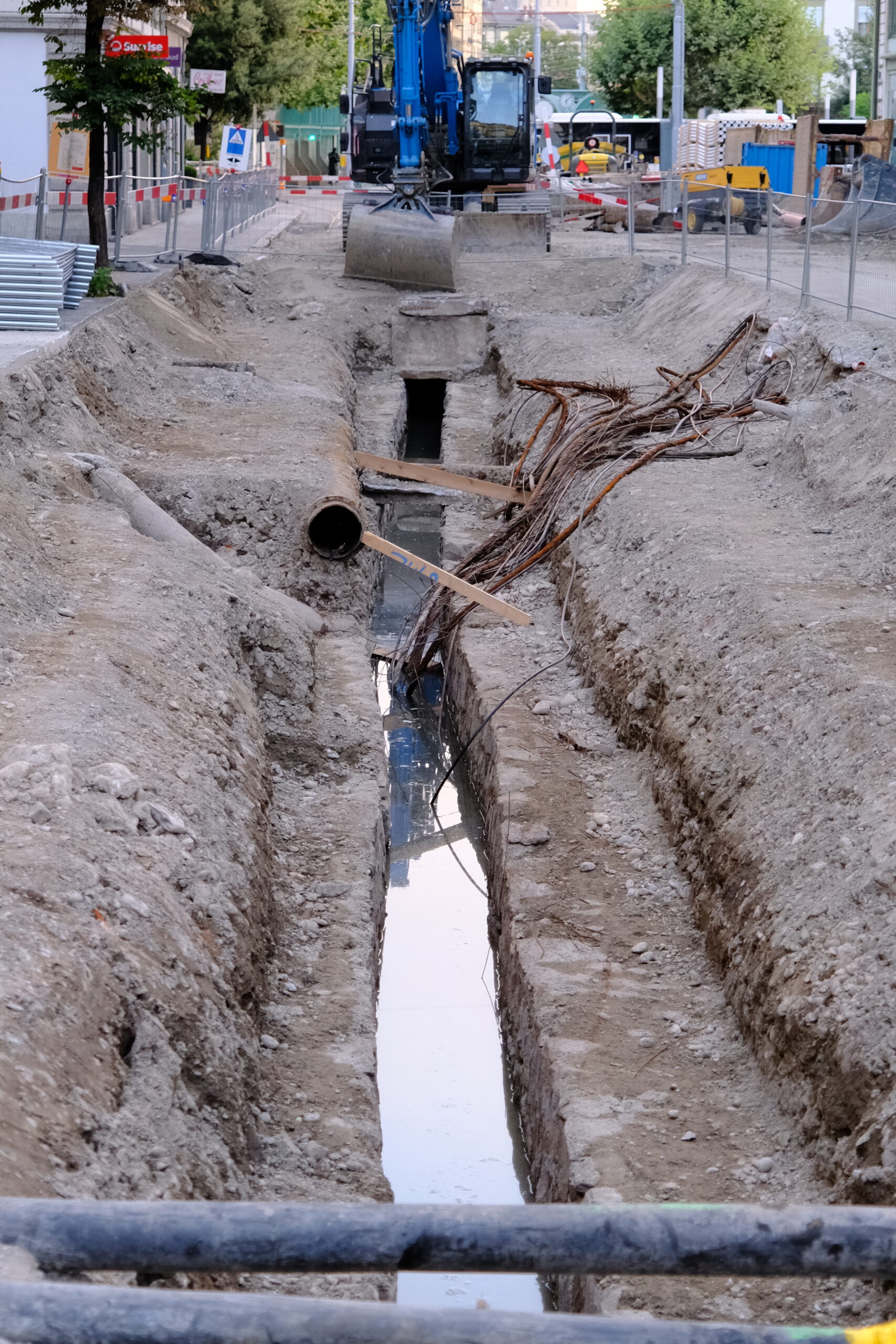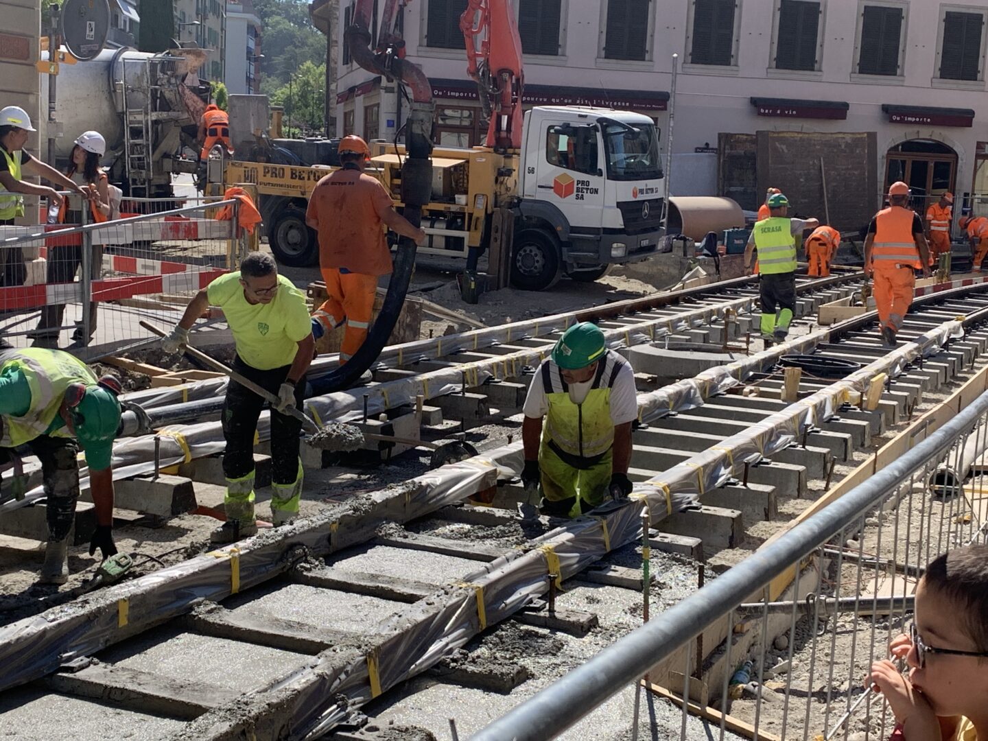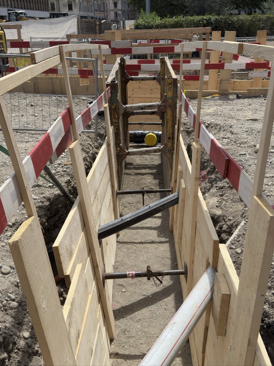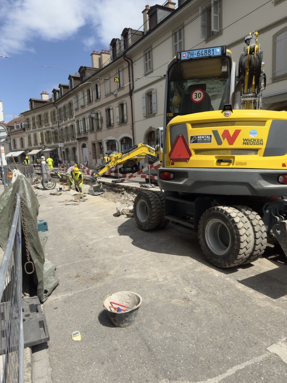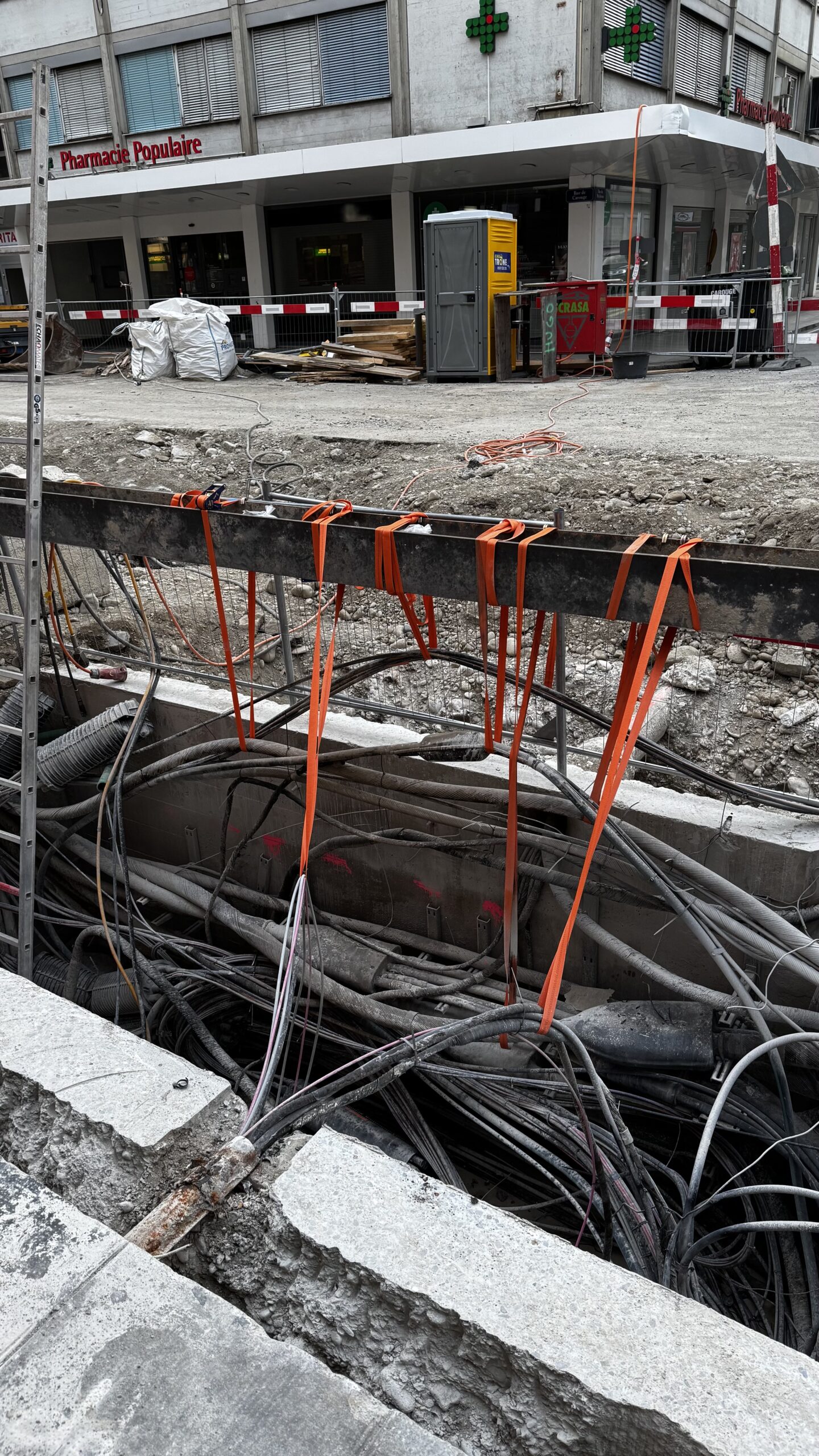 En même temps, dans le vieux Carouge, on en profite pour renouveler conduites et rails.