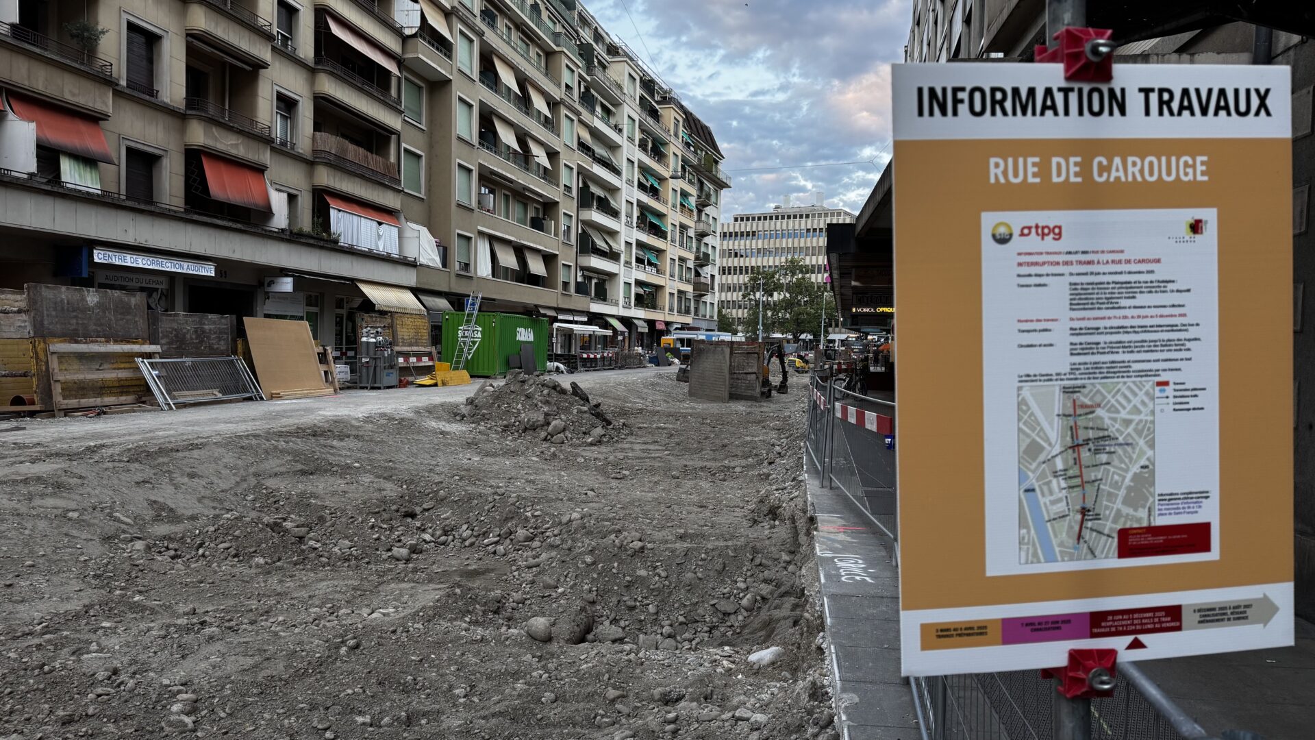 Un des gros chantier de l’été, c’est le chantier dit de la rue de Carouge. Le chantier va s’échelonner en 2 phase. La première phase va durer jusqu’au 17 août.