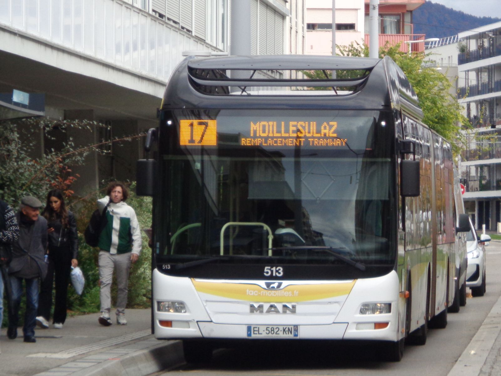 Des bus de remplacement, exploités par les Transports Annemassiens Collectifs (TAC) circuleront entre Moillesulaz et Clos Fleury. Voici quelques images réalisées par Stephane (merci pour le partage).